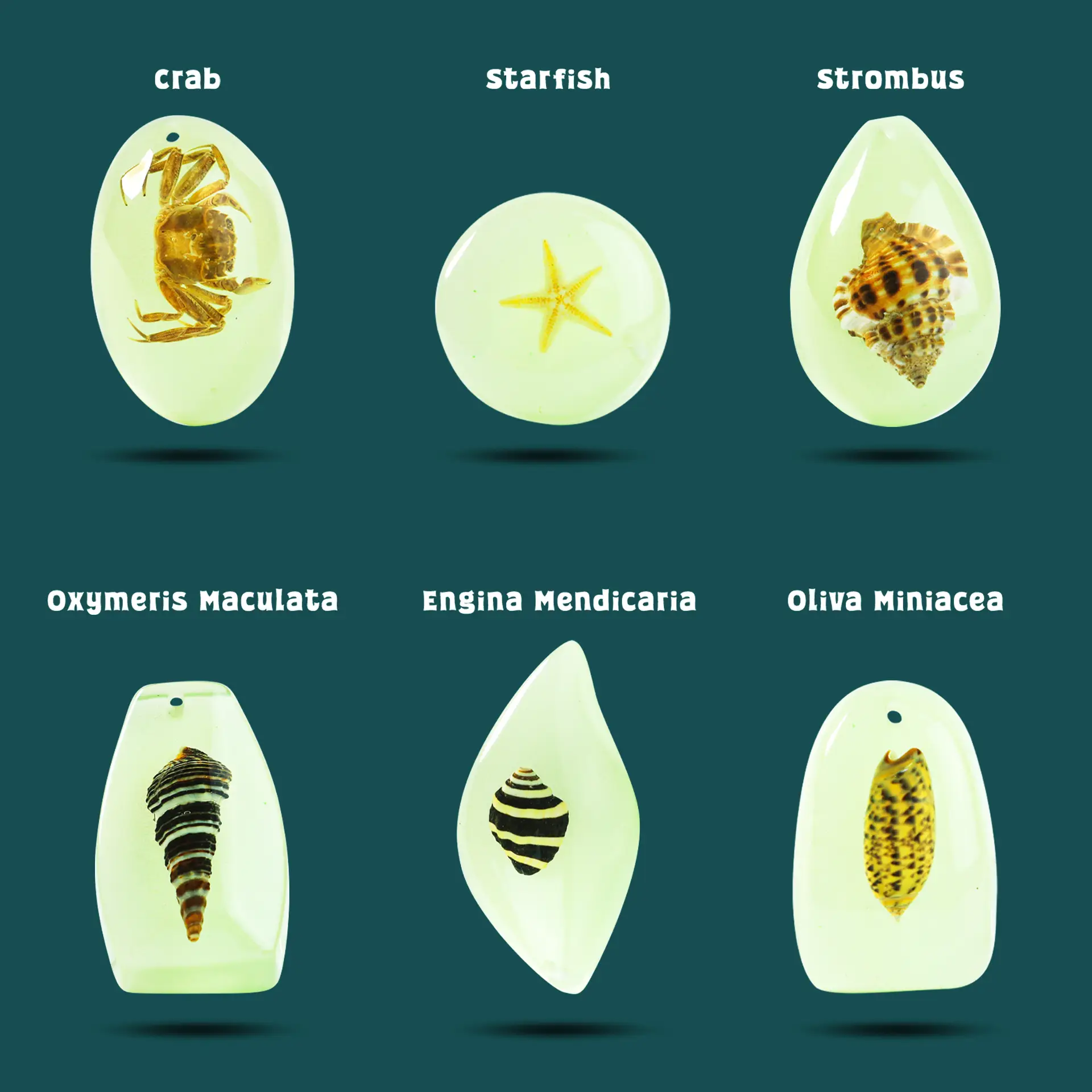 - Sea Creatures Inside – Uncover ocean-themed finds like starfish, crab, and shell designs inspired by Engina mendicaria, Oxymeris maculata, Olive miniacea, and Strombus.