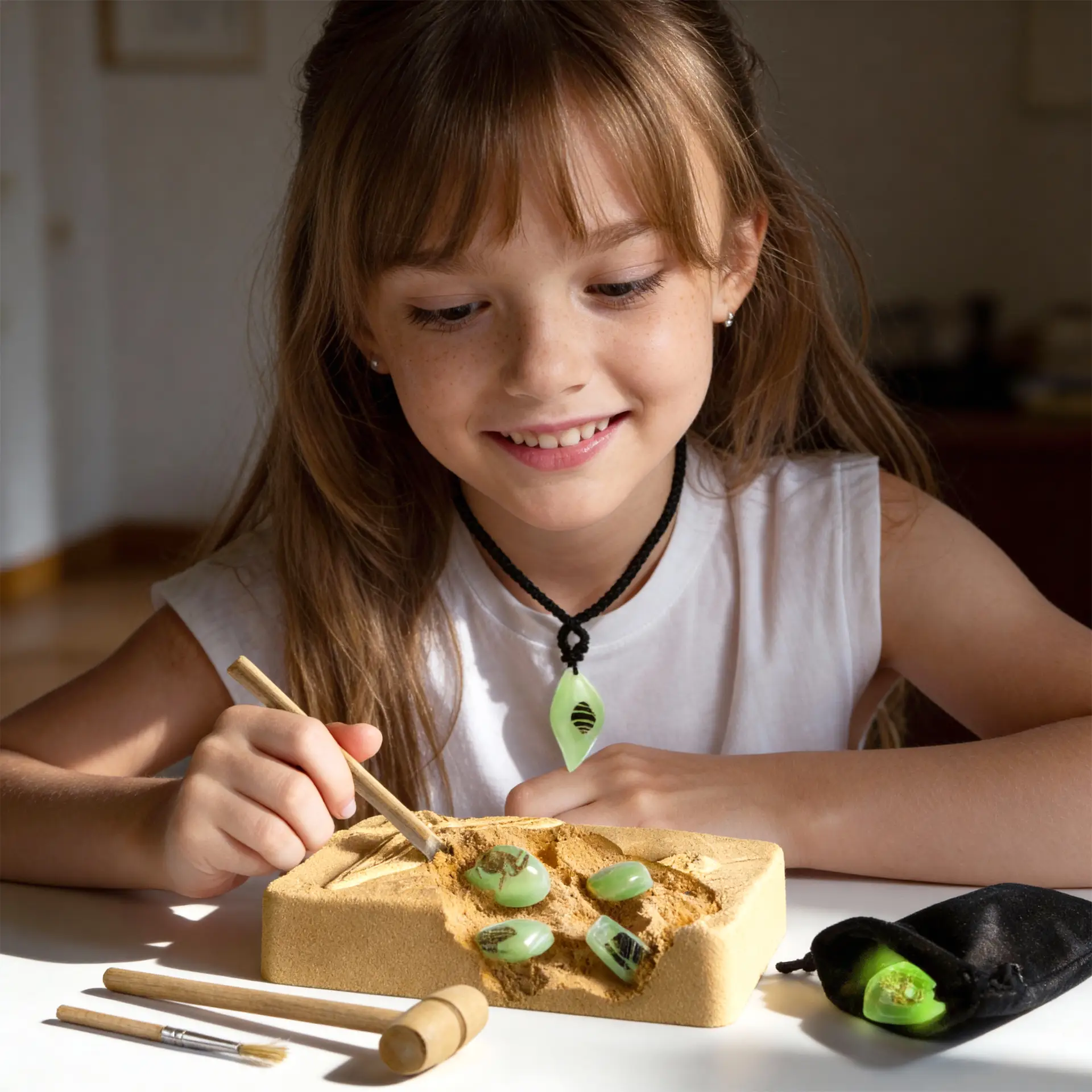 - Make 2 DIY Amber Necklaces – Includes 2 necklace cords so kids can turn their discoveries into wearable keepsakes after digging.
