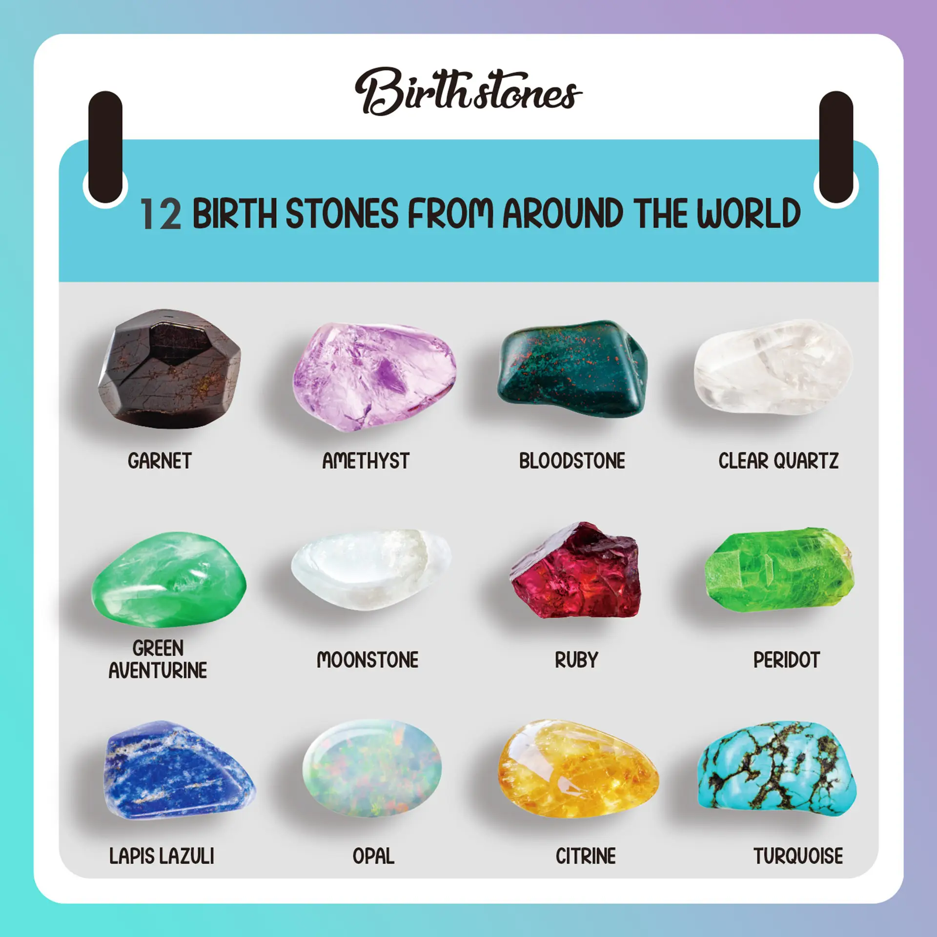 - EDUCATIONAL LEARNING CARDS INCLUDED – Comes with 12 illustrated cards that explain each birthstone’s month, meaning, and historical origin—turns gem digging into a STEM learning experience!