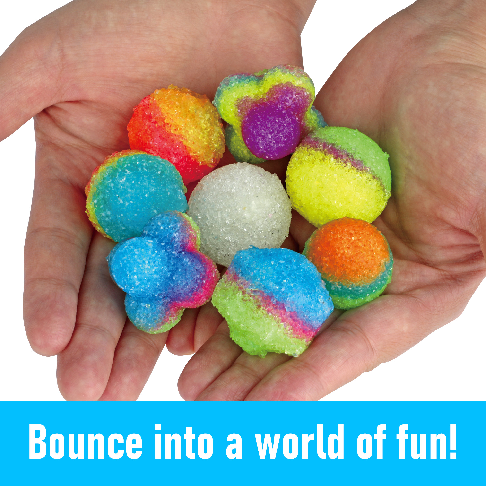 - Mix extra cool bouncy balls yourself: in just 10 minutes the fantastically patterned jumping balls are ready! Simply mix or layer the special colour granules in the colours and place them in the water. Which jumps on better
