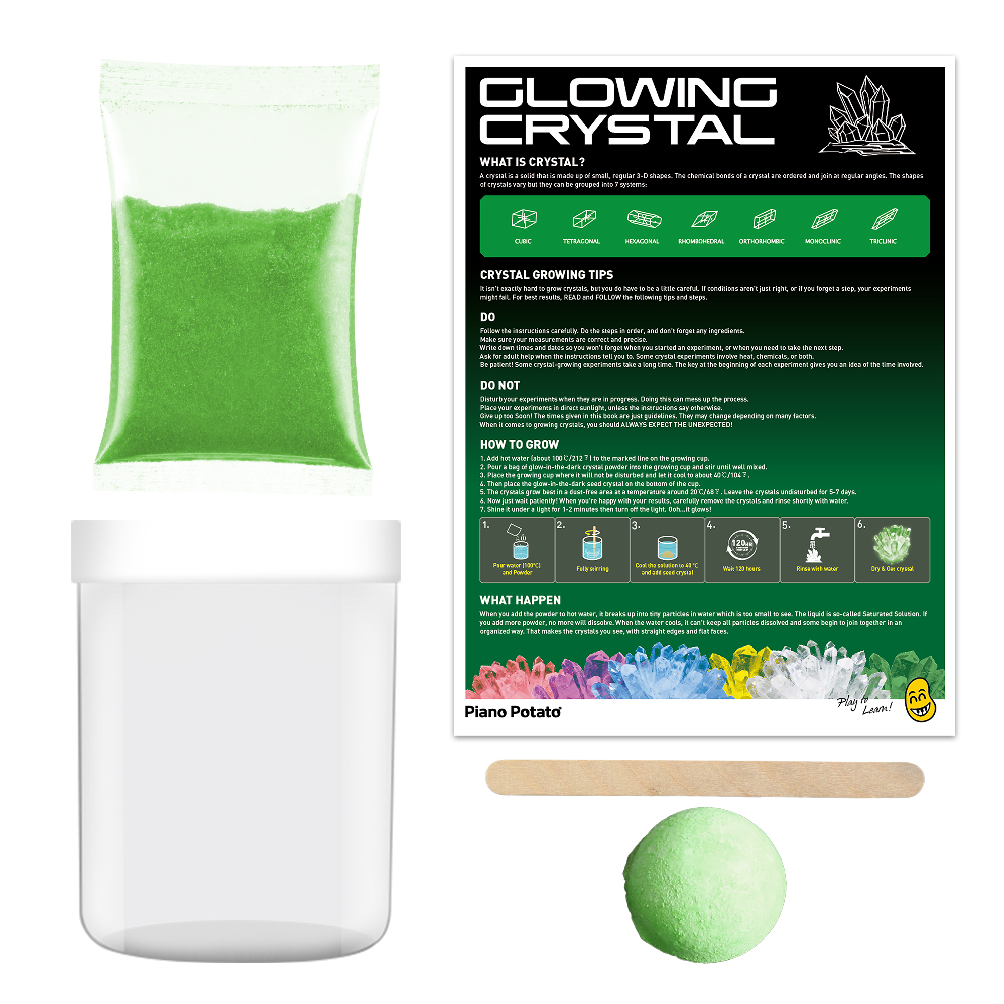 - 🧪 All-In-One STEM Science Kit: No Extra Supplies NeededIncludes everything for grow your own crystals success: crystal powder, seed crystal, plastic container, and stir stick. This complete crystal science kit lets kids mix, plant, and observe independently—perfect for science experiments for kids 6-8 and no extra materials required.