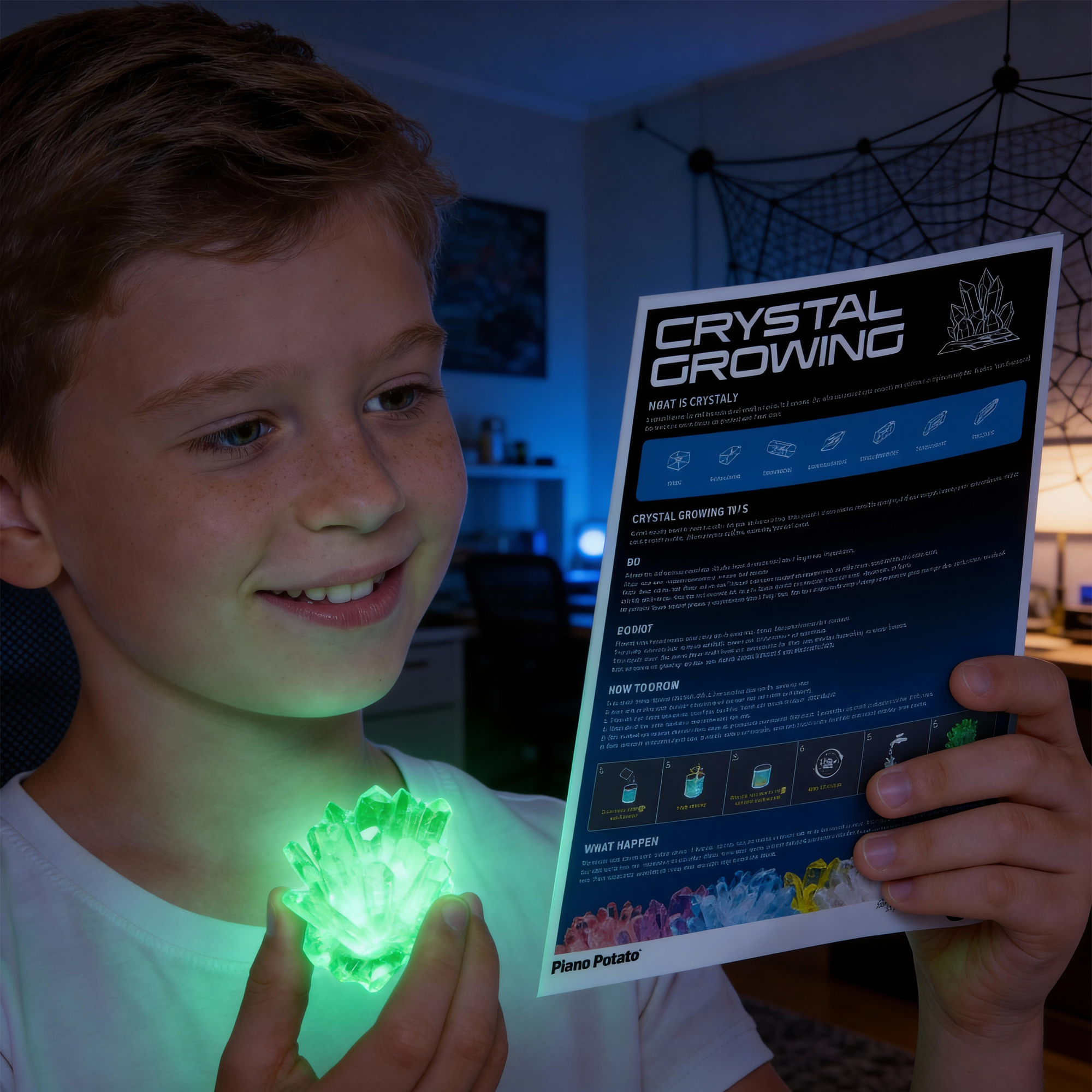 - 🎁 Decorative & Gift-Ready: Perfect for Every OccasionThe finished green crystal cluster doubles as lively desk decor. This crystal grow kit is an ideal birthday, Halloween, or Christmas gift—blending STEM learning with a sense of achievement, making it a standout crystal set for kids.