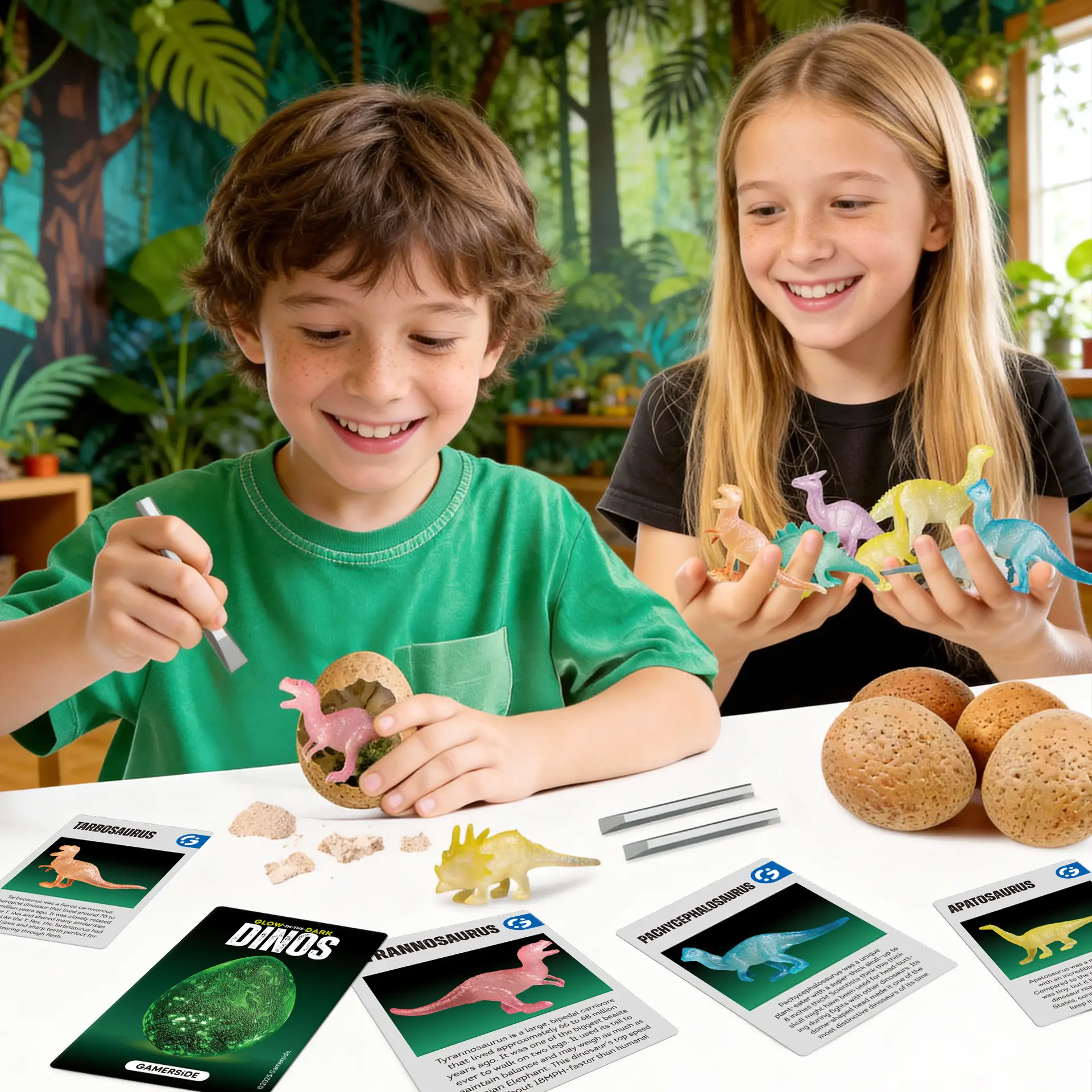 Dino Egg Excavation Kit – 12 Glow-in-the-Dark Dino Eggs with Dinosaur Figures & Learning Cards (Ages 6+)