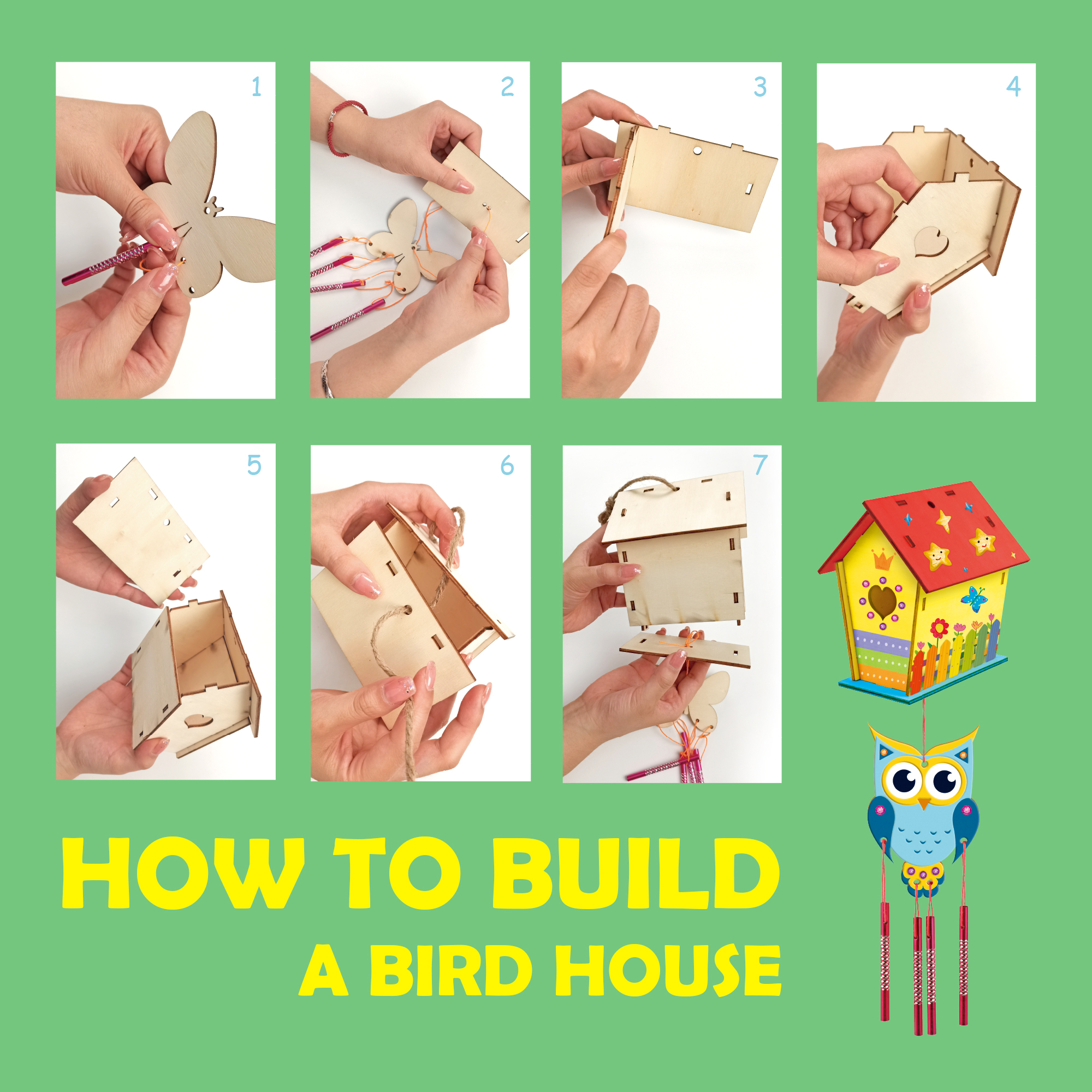 - 🛠️【EASY TO BUILD AND PAINT】 The wooden boards of the birdhouse are pre-cut and slotted, no nails or hammers required, kids can easily finish the birdie house independently or by few tips from parents, sisters, brothers, or teacher. Please note that you have to completely push the small protuberance into the slot for structure reinforcement, then for freewheeling painting craft activities.