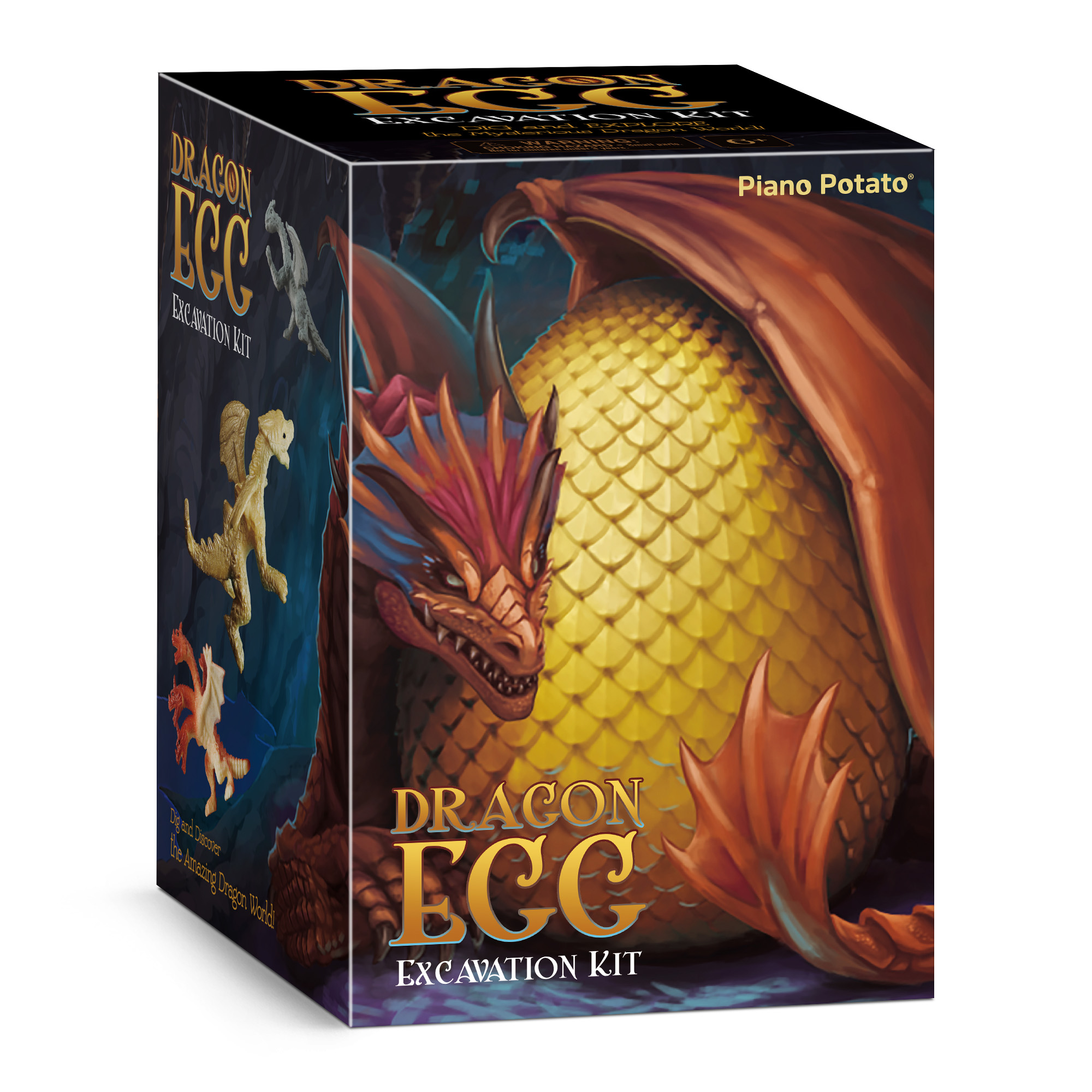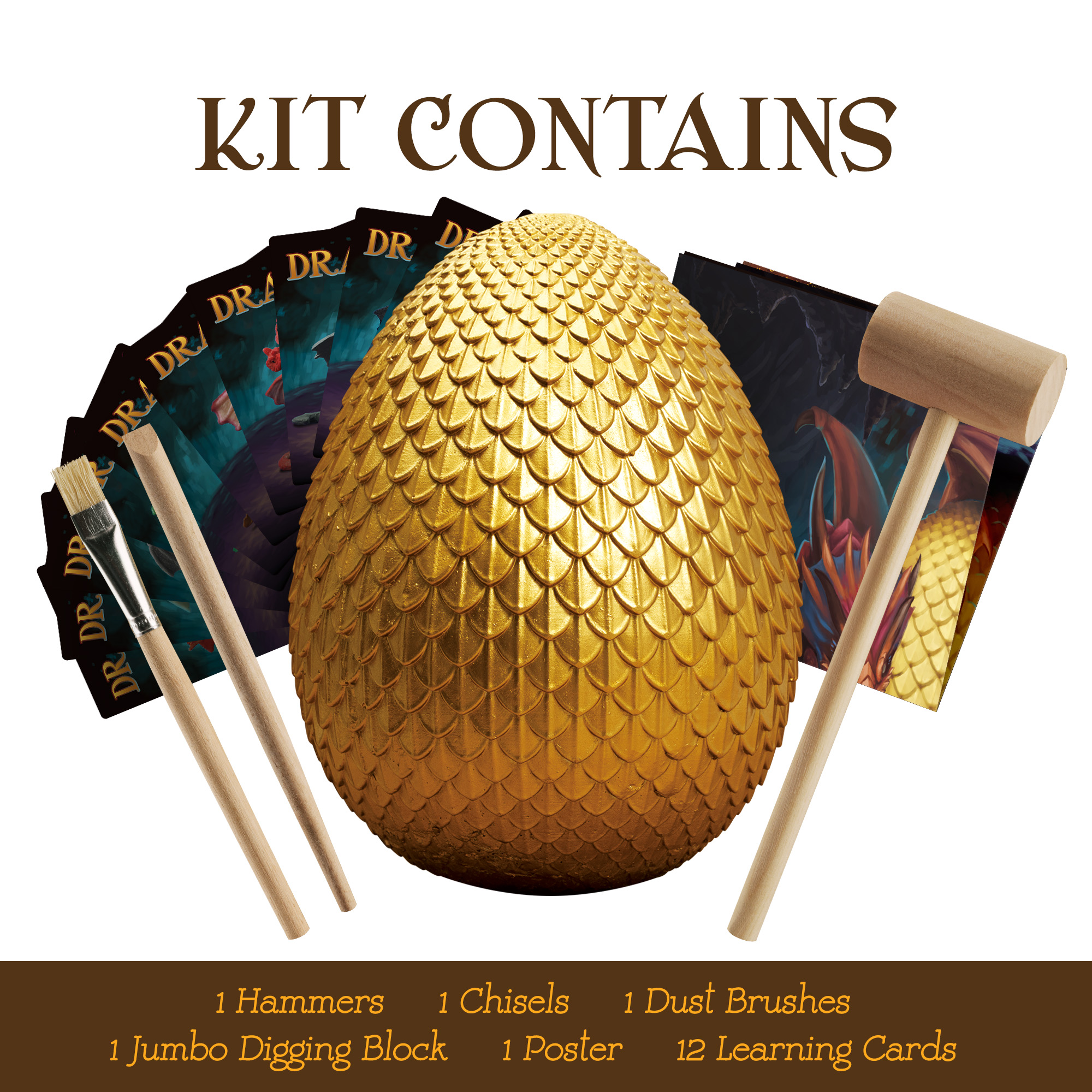 Dragon Egg Dig Kit – Jumbo Excavation Egg with 12 Mini Dragons & 2 Treasures, Tools + Learning Cards