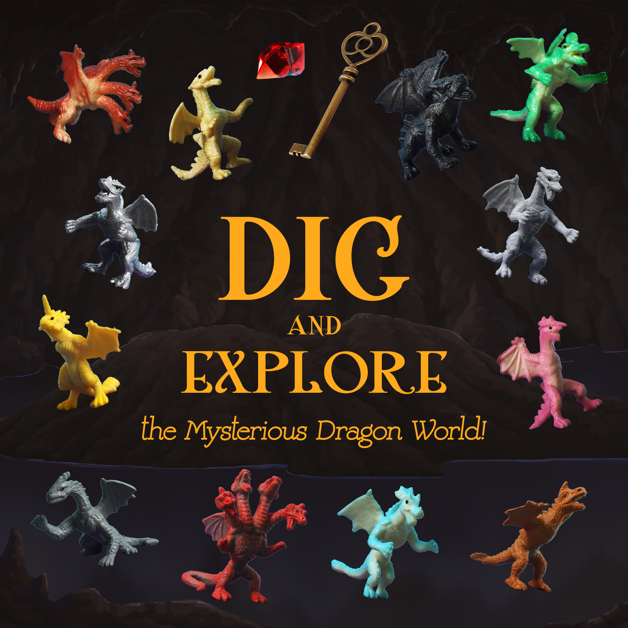 Reveal a colorful collection of 12 mini dragon figures plus 2 bonus treasure pieces for even more adventure play. - Complete Excavation Tools Included