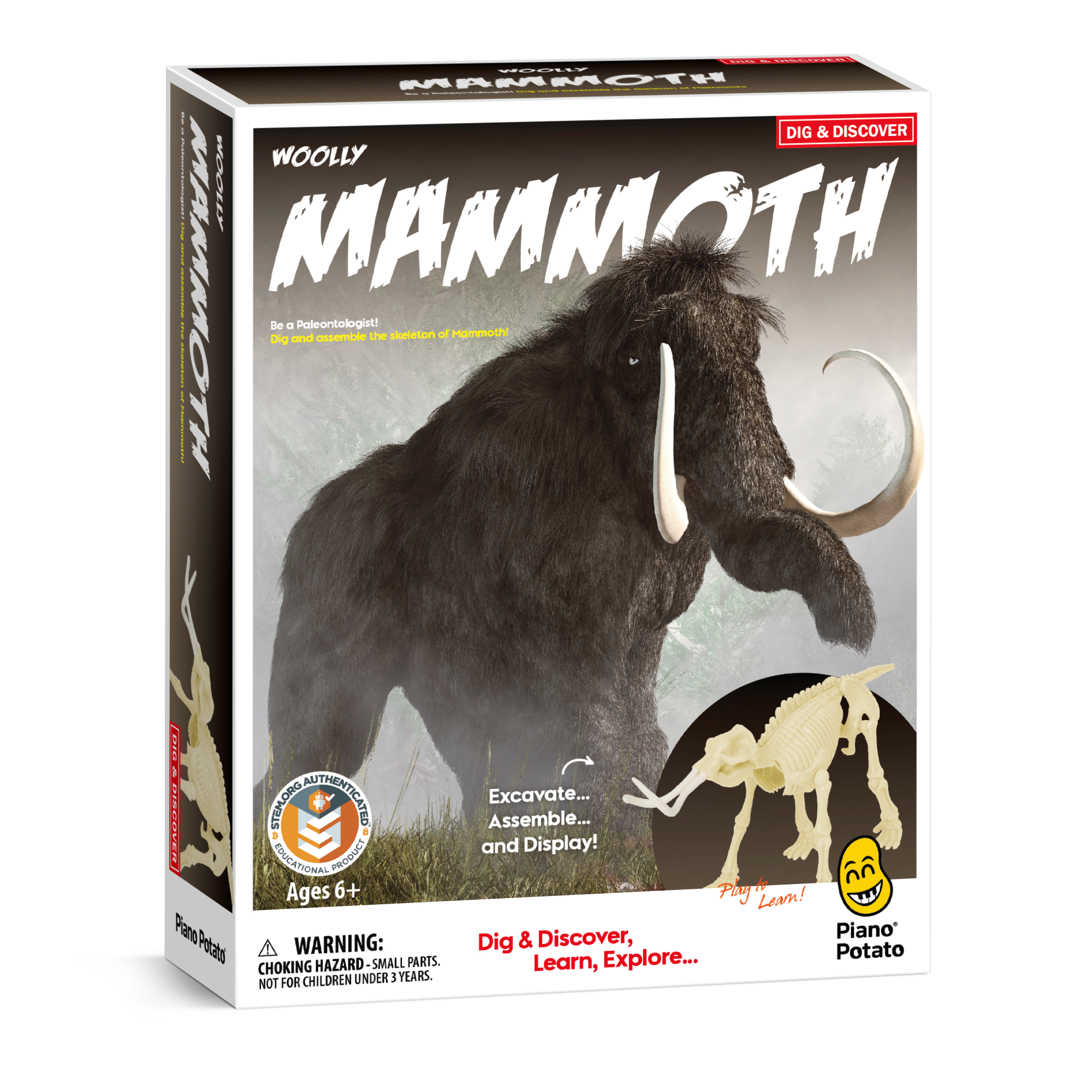 Eduman Mammoth Dinosaur Dig Kits,with 1 Block,1 Digging Tool,1 Digging Brush ,1 Hammer,1 Instruction Sheet