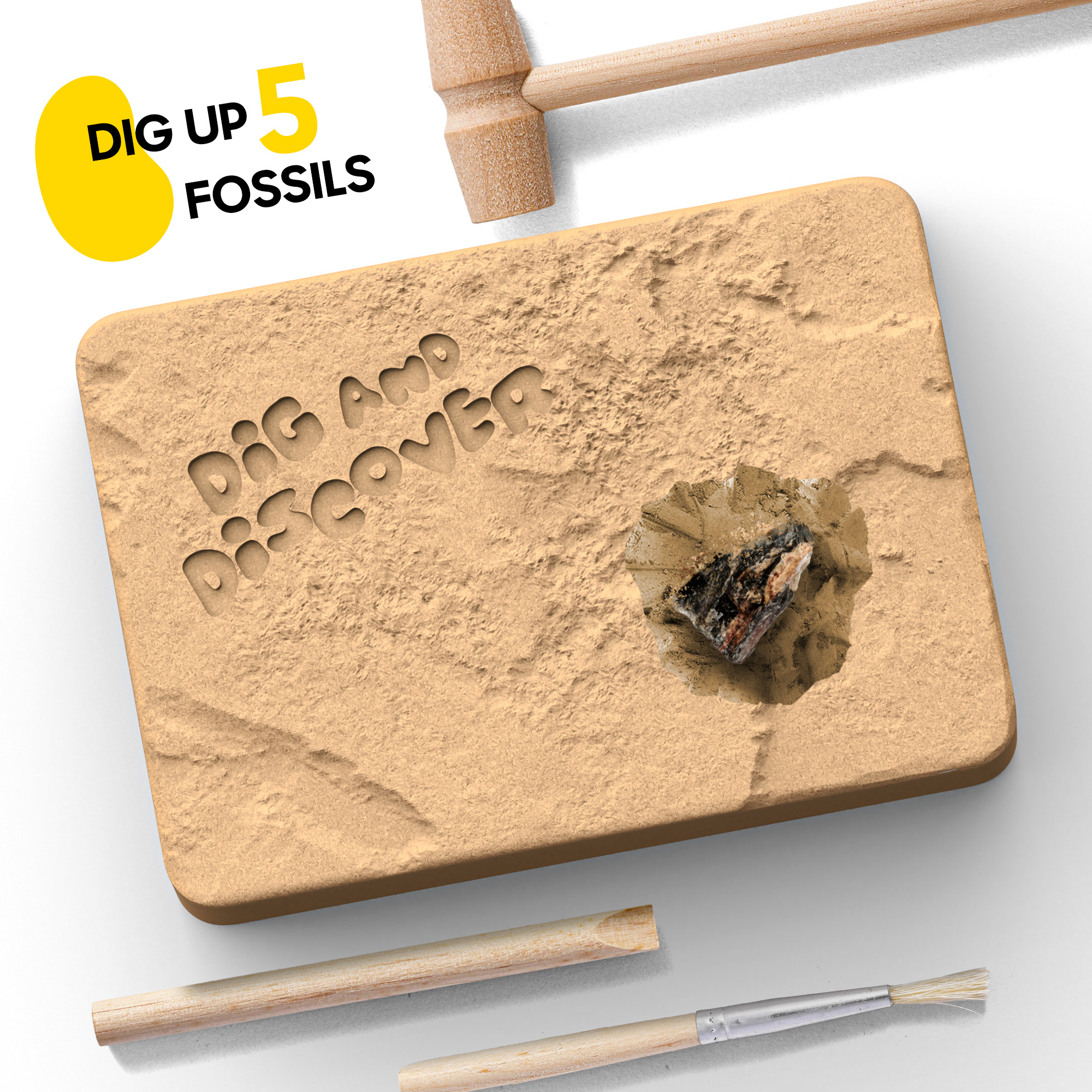 Fossil Dig Kit – Excavate 5 Authentic Fossils, Kids Educational Science Kit, Holiday & Birthday Gift
