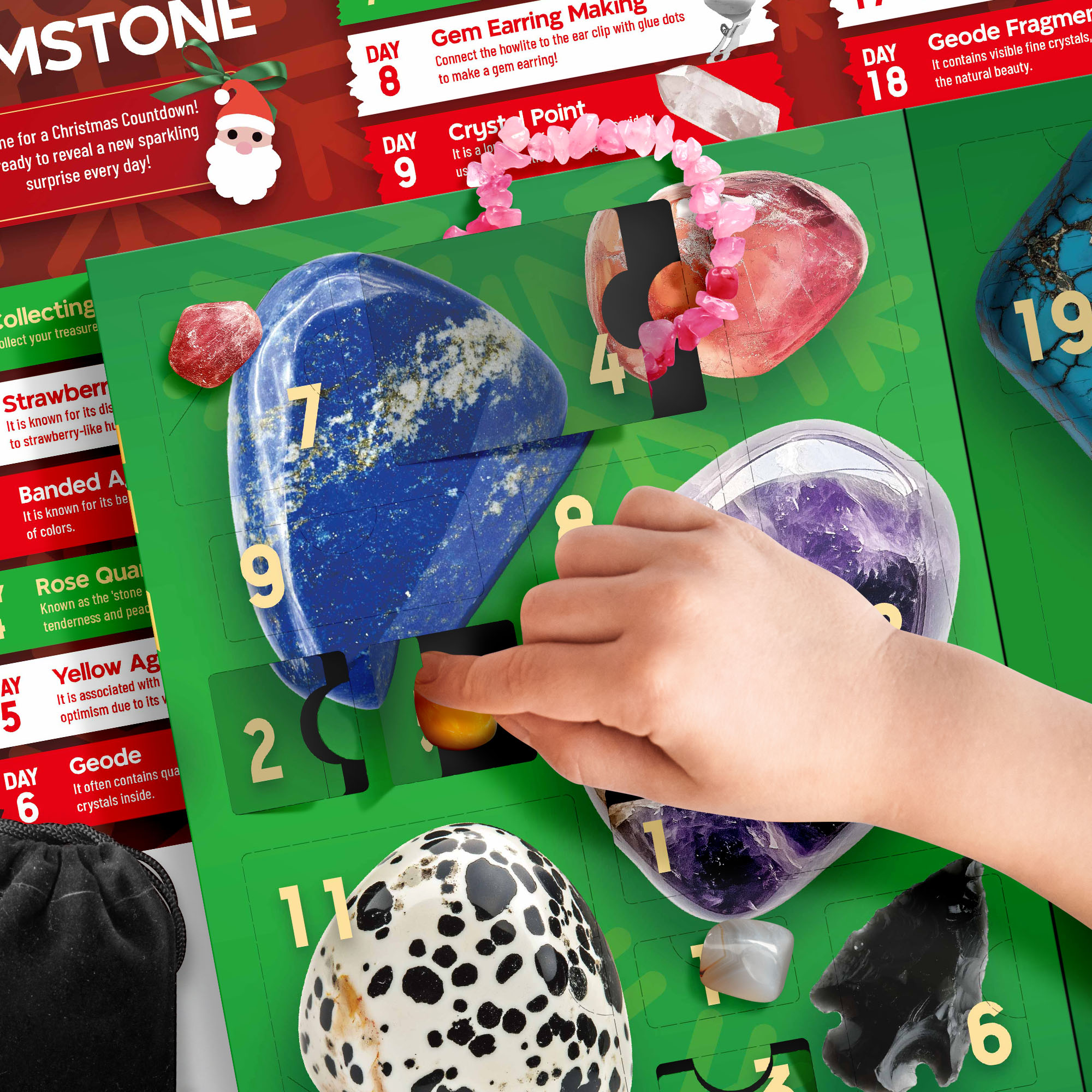 - STEM Learning + Crafting Fun: More than a kids advent calendar! It has 2 gem digging activities (dig like a geologist) and 7 charm-making activities to craft jewelry. Plus a gem bracelet and instruction sheet. Blend STEM gem knowledge with hands-on fun in this crystal advent calendar 2025.