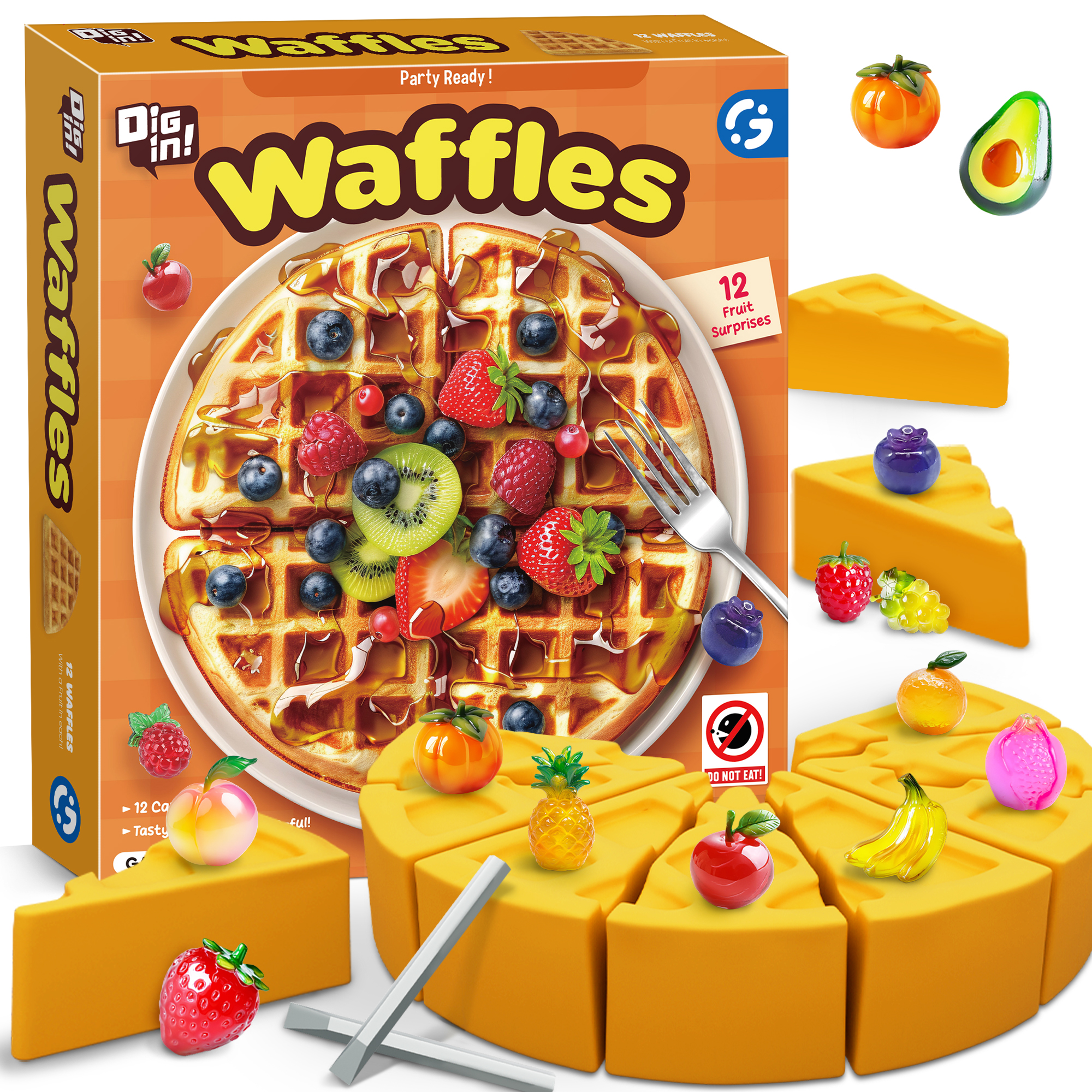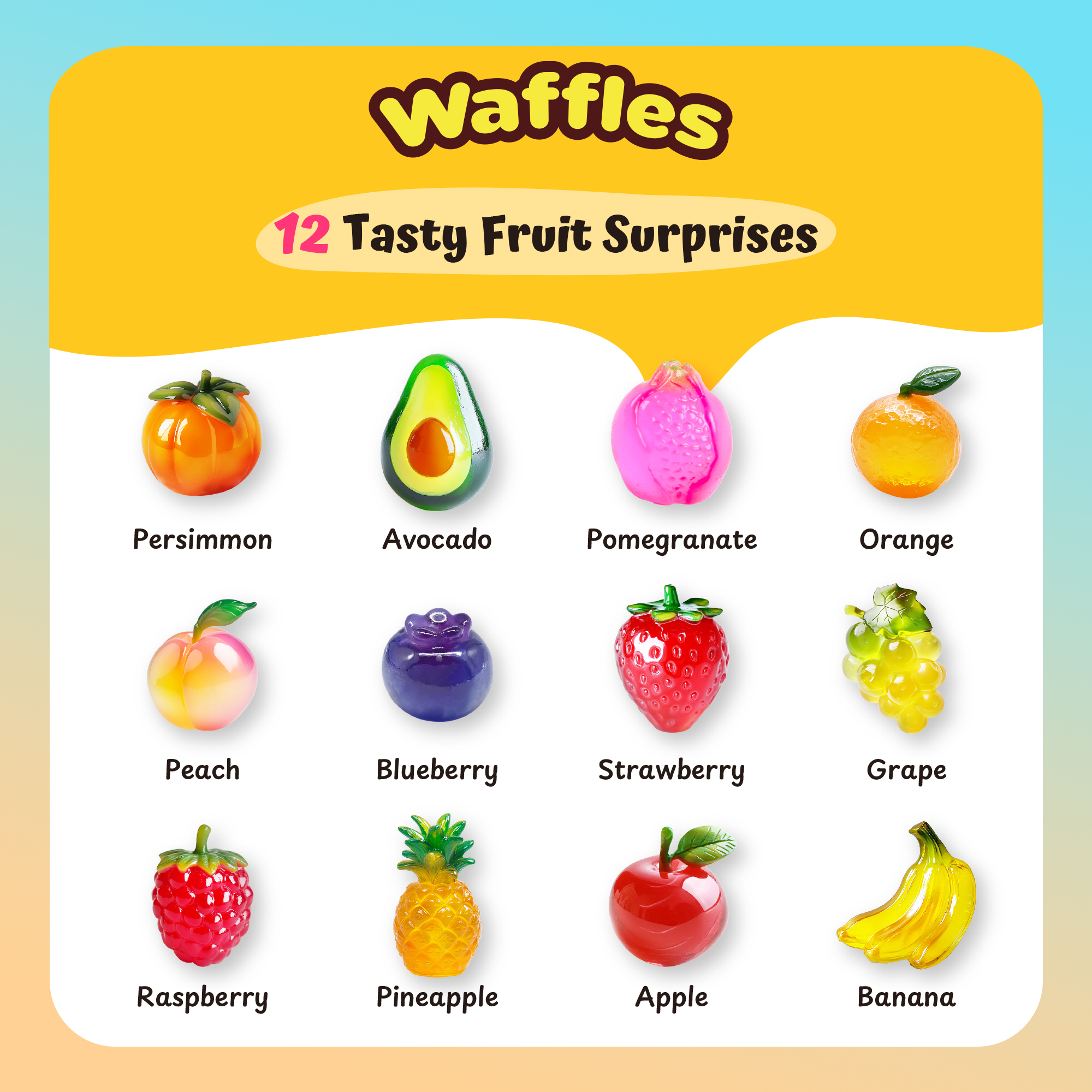 - Dig 12 Waffle-Shaped Blocks for Fruit Surprises – Unearth 12 unique mini fruit toys (strawberry, banana, pineapple, & more) hidden in waffle-inspired blocks—every dig feels like a tasty treasure hunt!