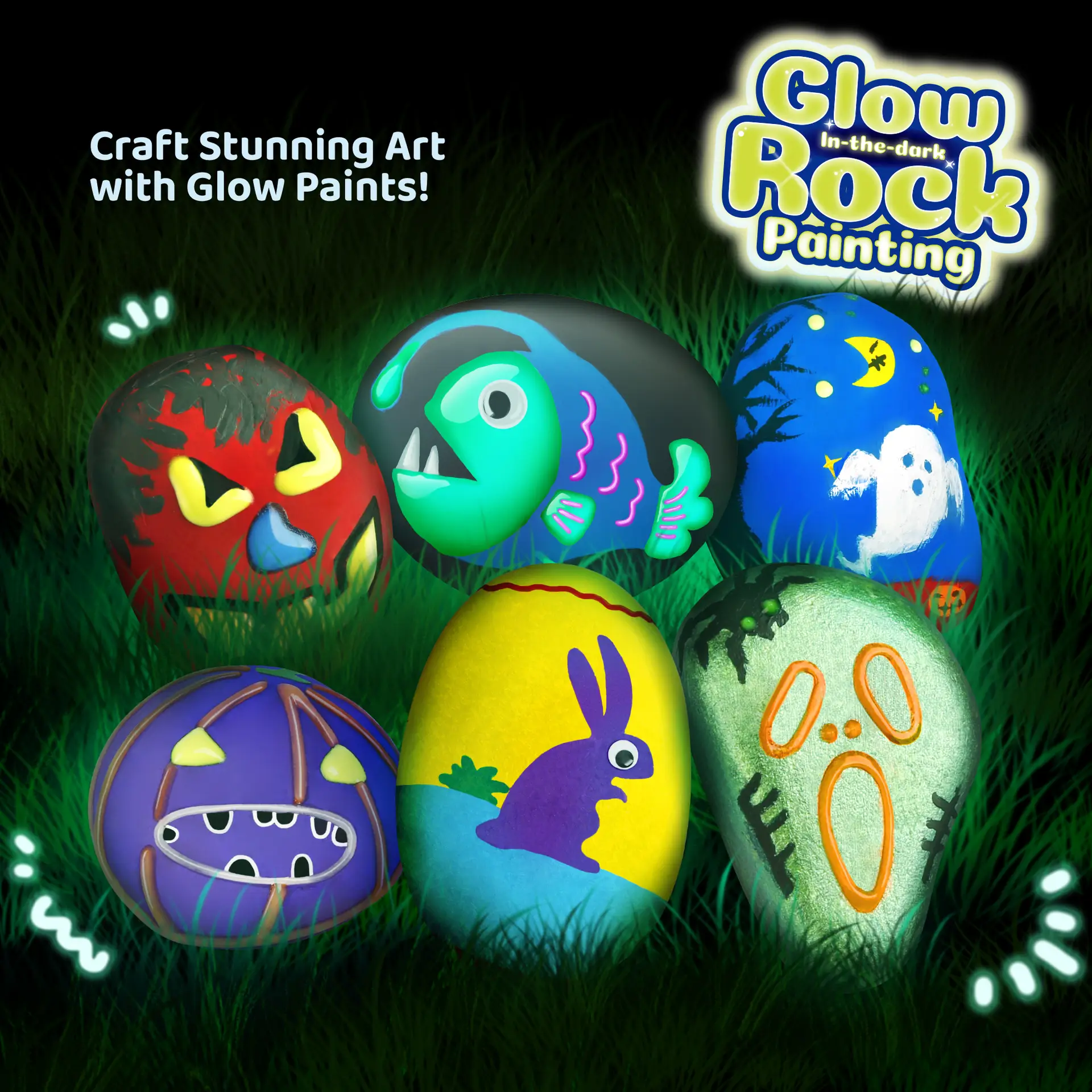 - Create Magical Glow-in-the-Dark Rocks:Unleash creativity with this glow in the dark rock painting kit! Paint 10 smooth rocks with 5 glow-in-the-dark paints and 6 vibrant color paints, then watch them shine bright at night. It turns ordinary rock painting into a magical art experience for kids of all ages.