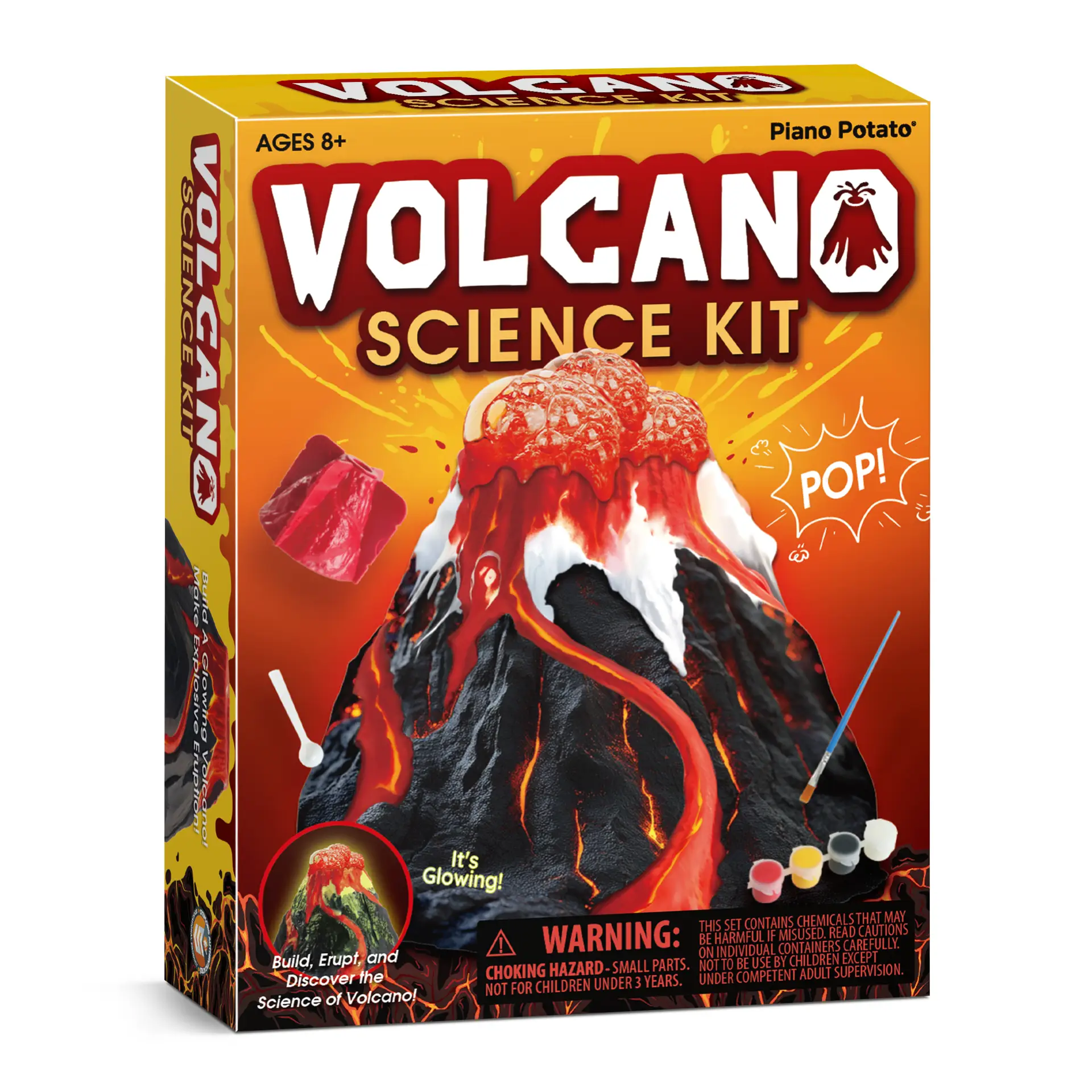 Glow Volcano Science Kit – Paint & Build a Volcano, Make a Foamy Eruption, Includes Mold & Supplies