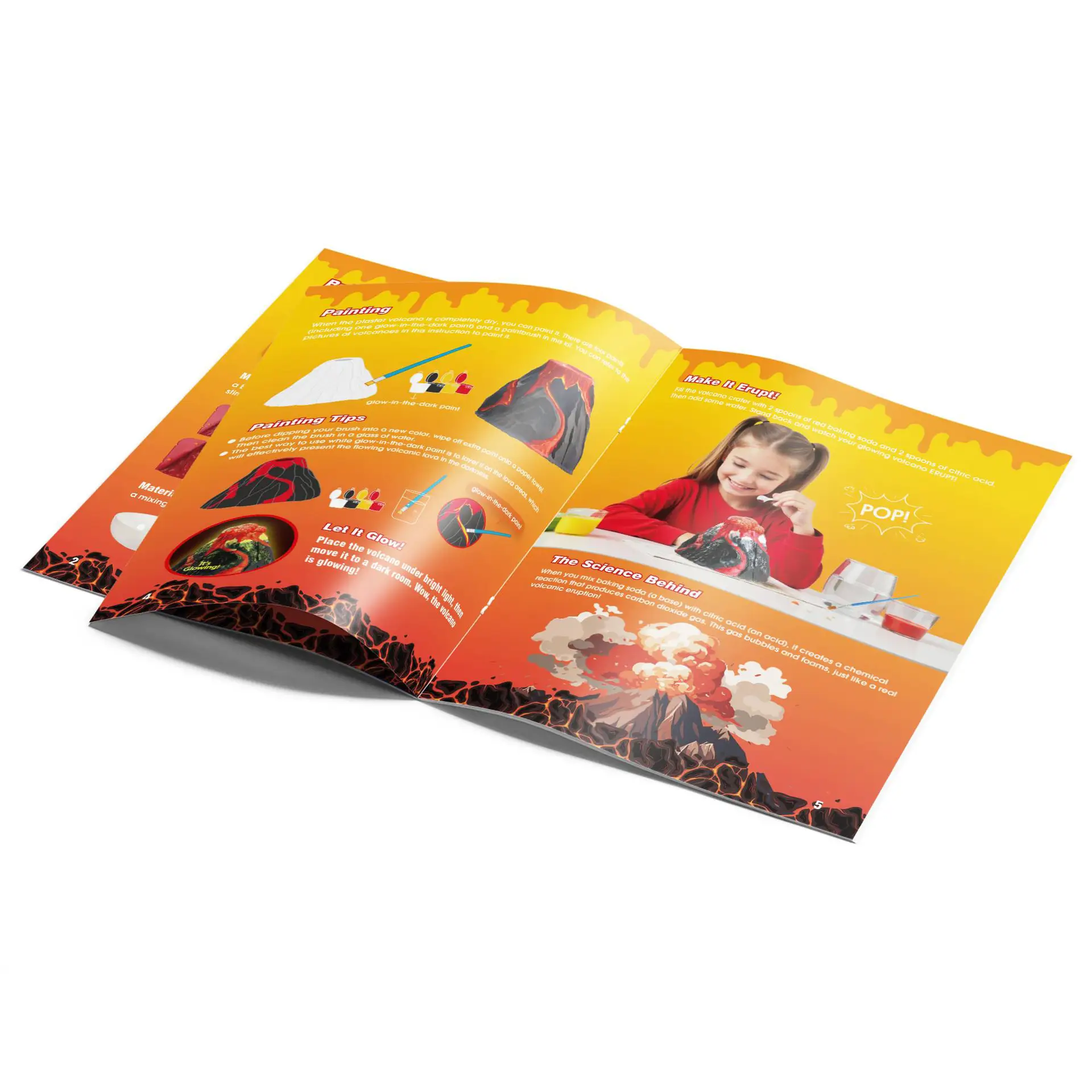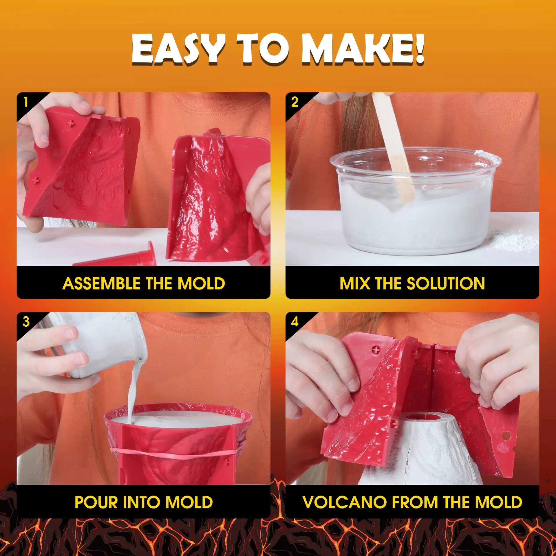 - Easy Step-by-Step Fun – Illustrated guide shows how to assemble, mix, pour, unmold, paint, and erupt—great for family activities.