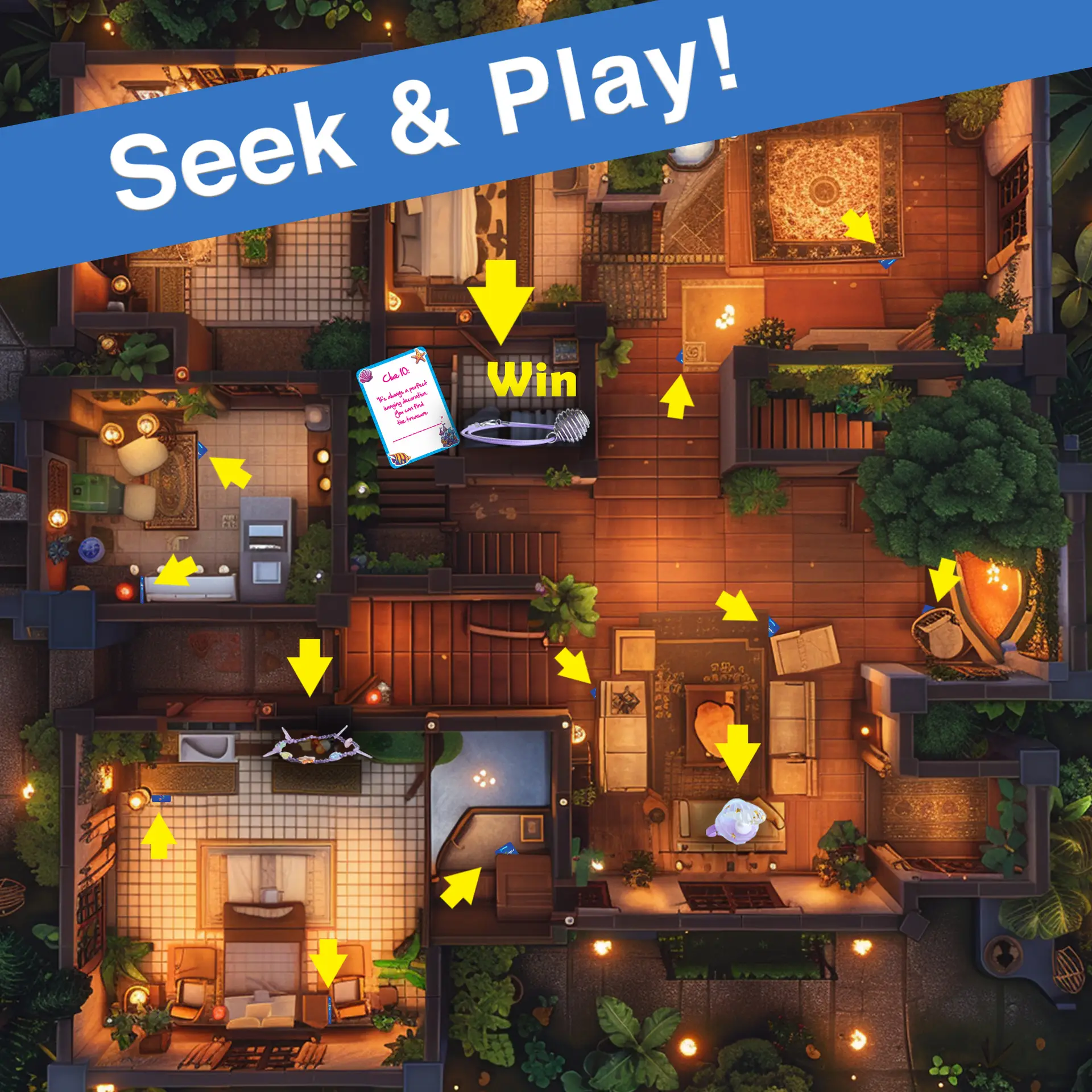 - Game Instructions Detail: Hide Charms and Create Clues: Conceal the charms and devise mysterious clues for an exciting treasure hunt. Provide Starting Clue: Kick off the adventure by giving players an initial clue to guide their search. Follow Clues to Win: Players must follow the clues to uncover all the charms and emerge as victorious treasure hunters in this engaging game.