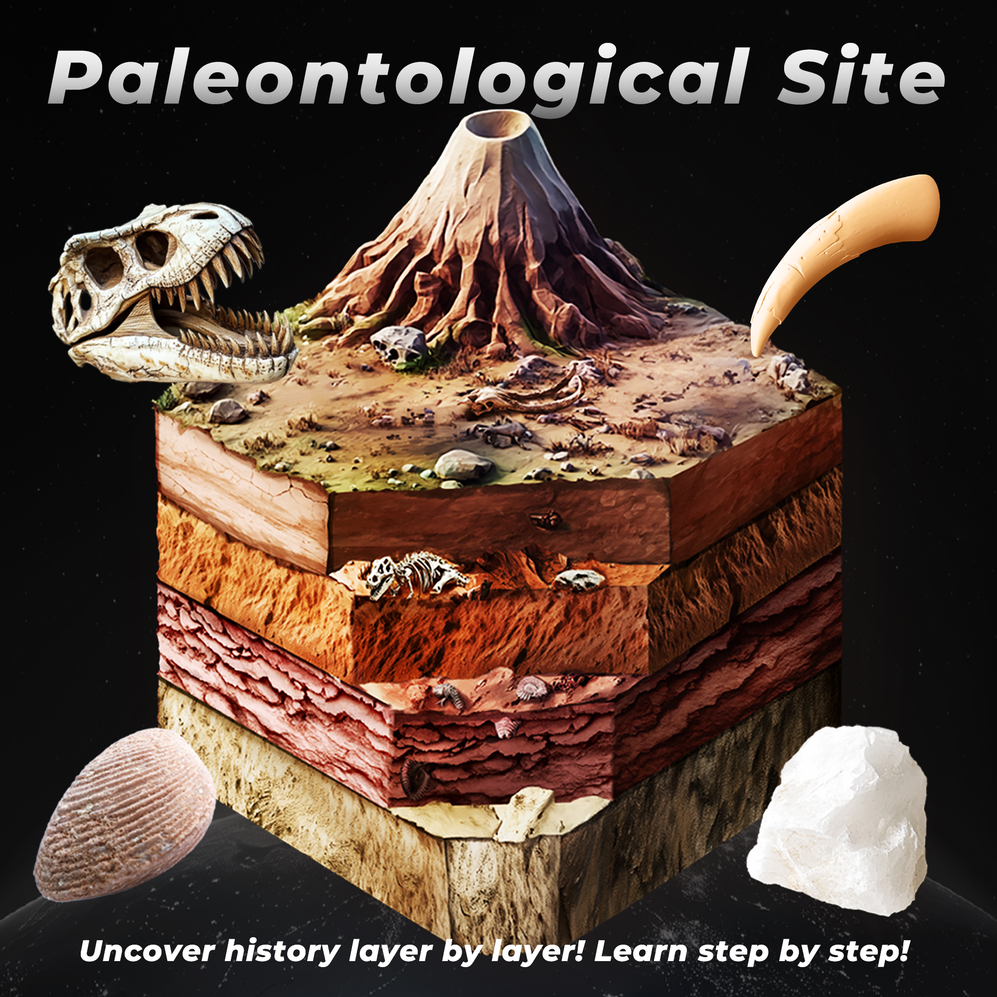 Paleontological Site Fossil Digging Kit for kids, Dig Up 4 Geological Eras with Dinosaur Fossil, Rock