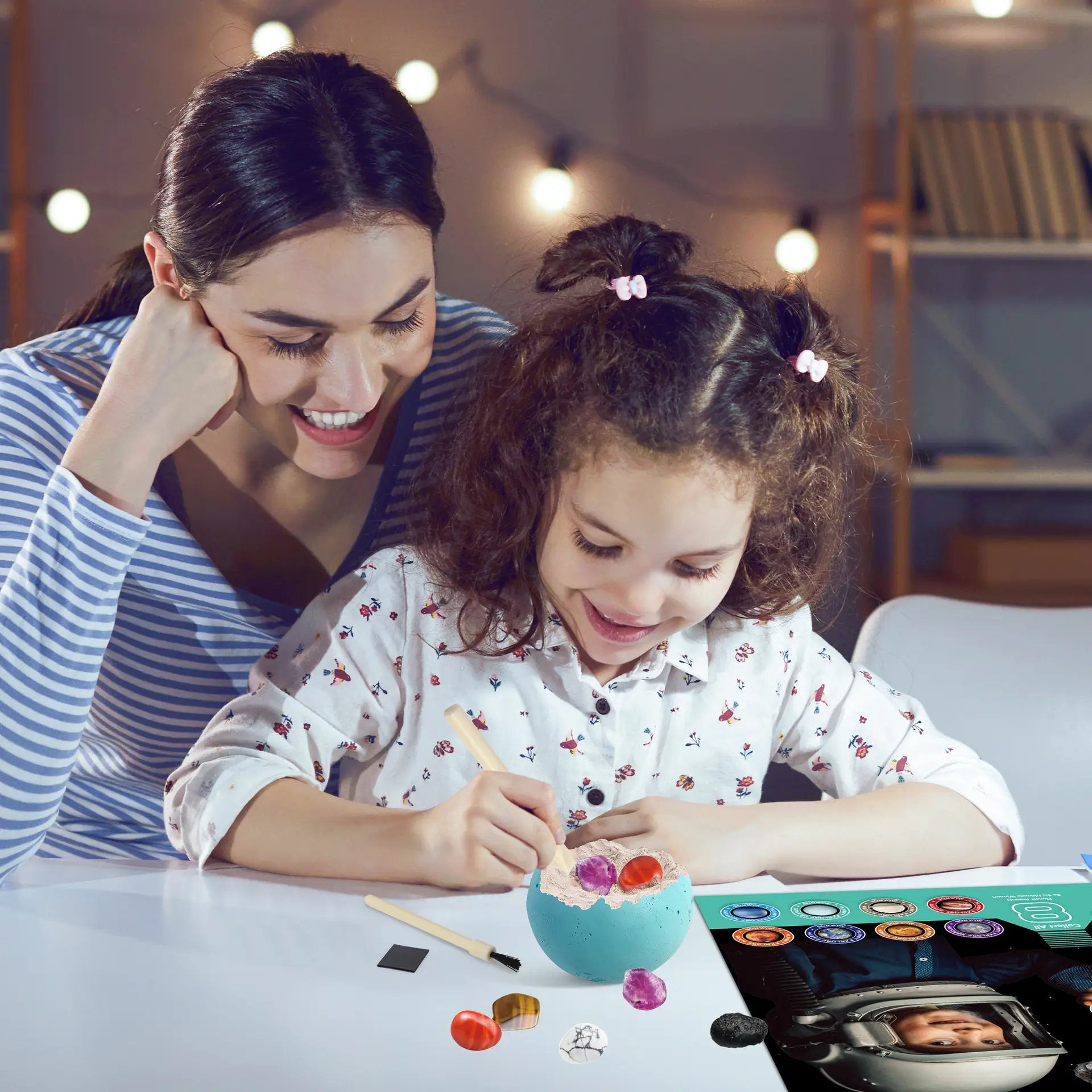 - Interactive Planet Toy Adventure with Gemstone Dig Kit: A space-themed excavation kit for ages 6+, featuring 1 planetary rock blocks filled with gemstones. Kids dig and uncover treasures like foam coral, polished amethyst, and green jade while exploring the solar system!