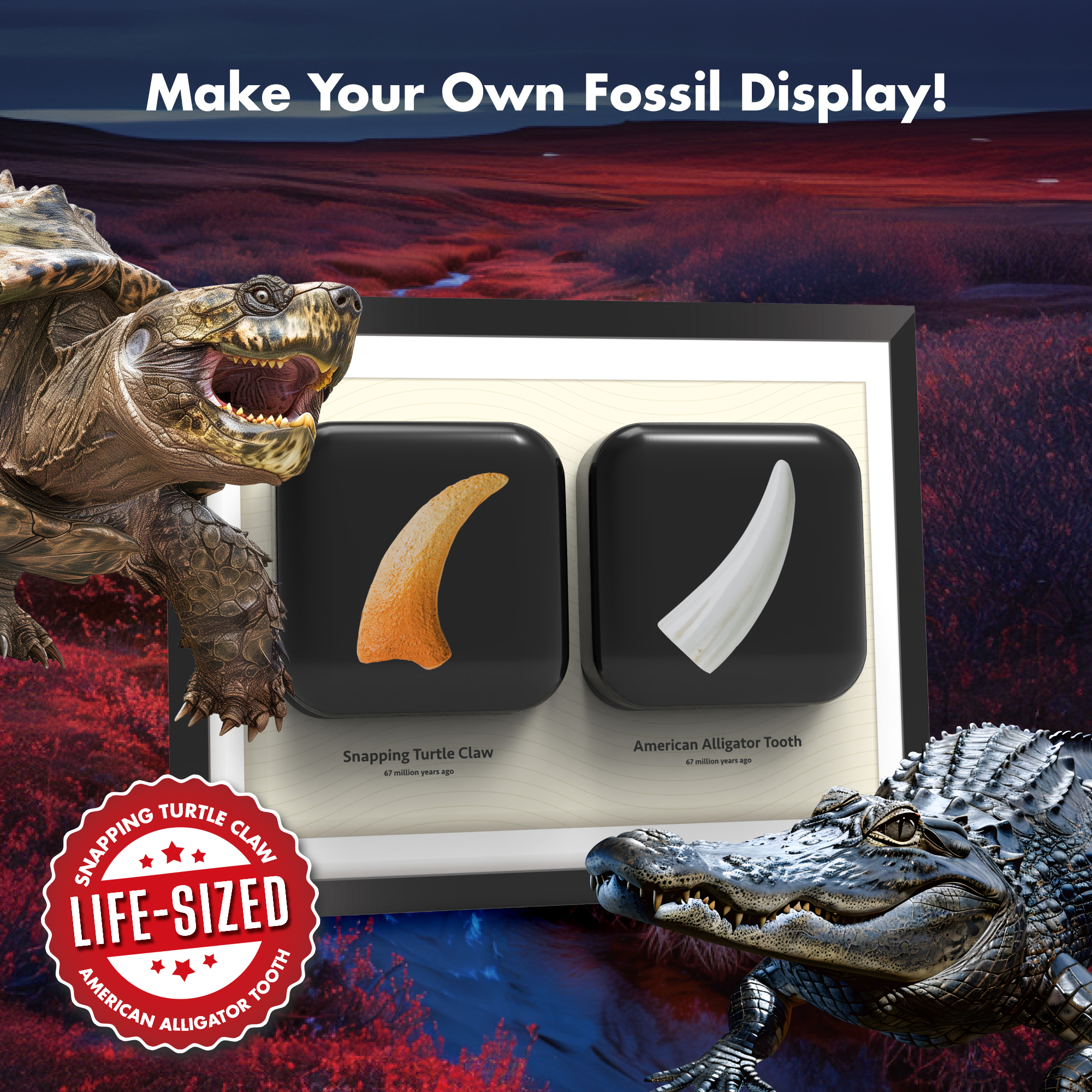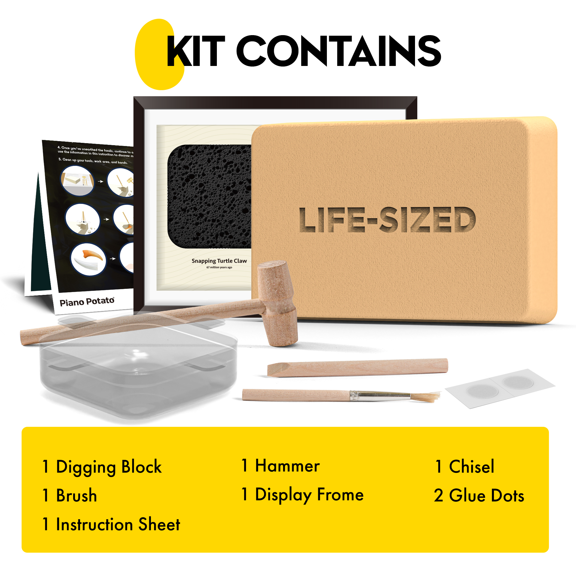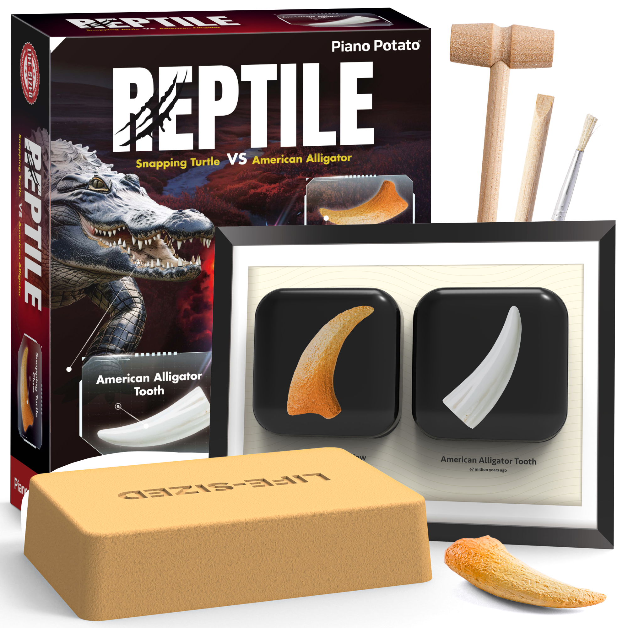 Reptile Fossil Dig Kit – Excavate Life-Sized Snapping Turtle Claw & American Alligator Tooth