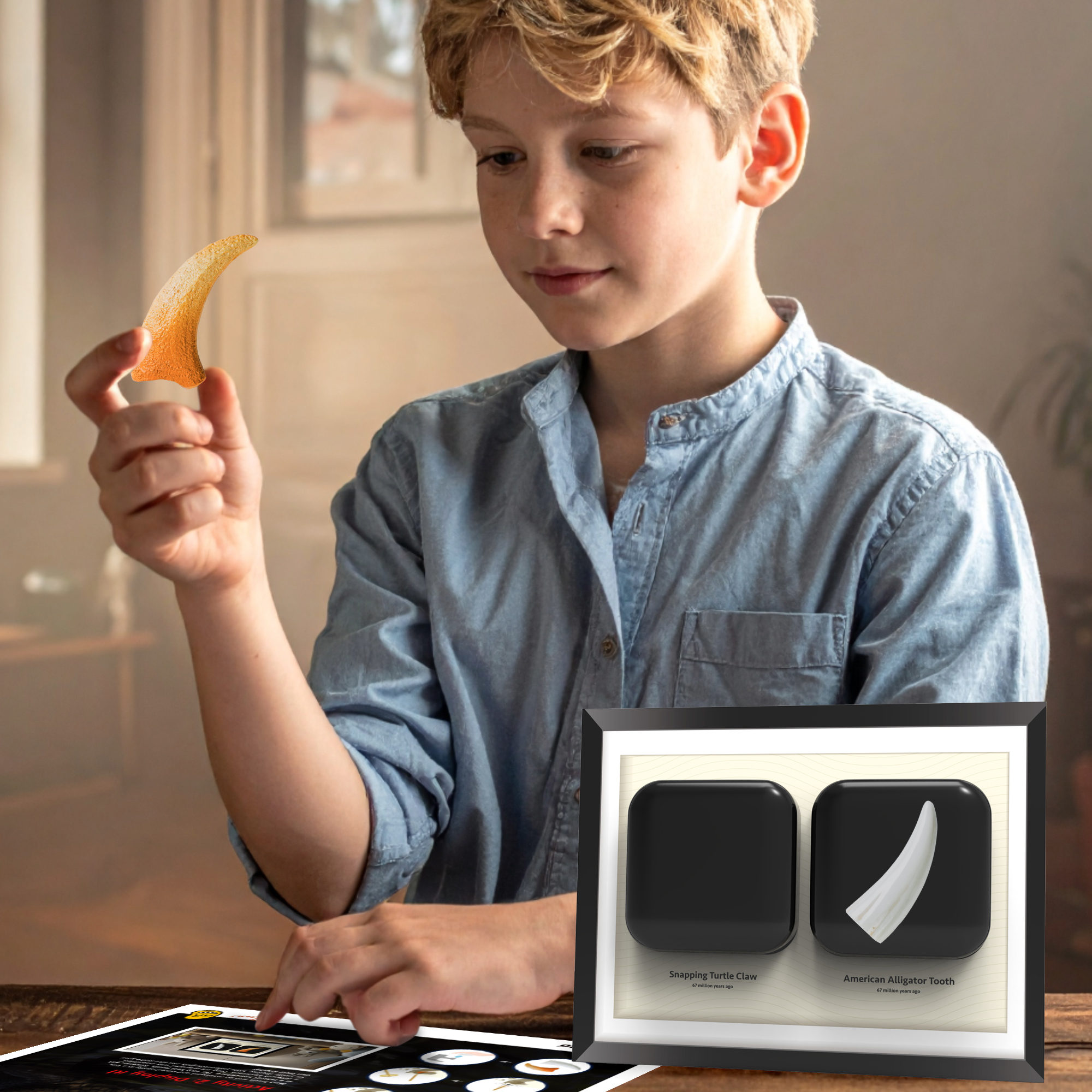 - Customizable Display for Treasured Discoveries: Turn excavated treasures into a permanent display with the included frame. After cleaning their turtle claw and alligator tooth, kids can mount them in the sleek frame to create a mini museum-style exhibit—perfect for showing off to family and friends, or for decorating desks, shelves, or bedrooms. It’s a unique way to preserve their digging achievements and celebrate their love for science.