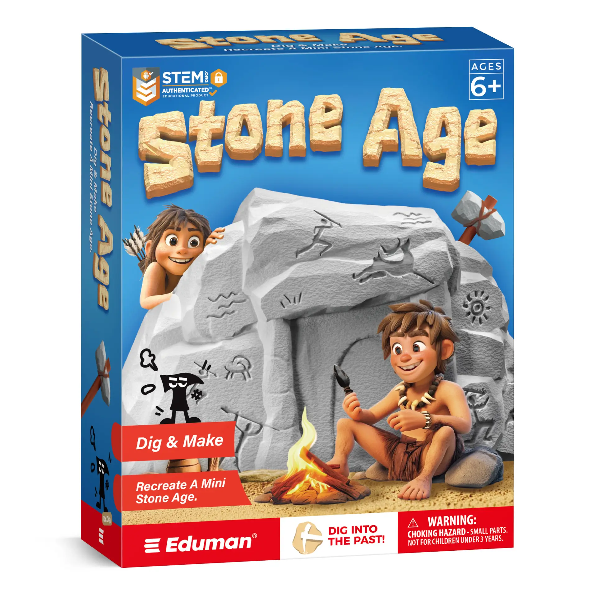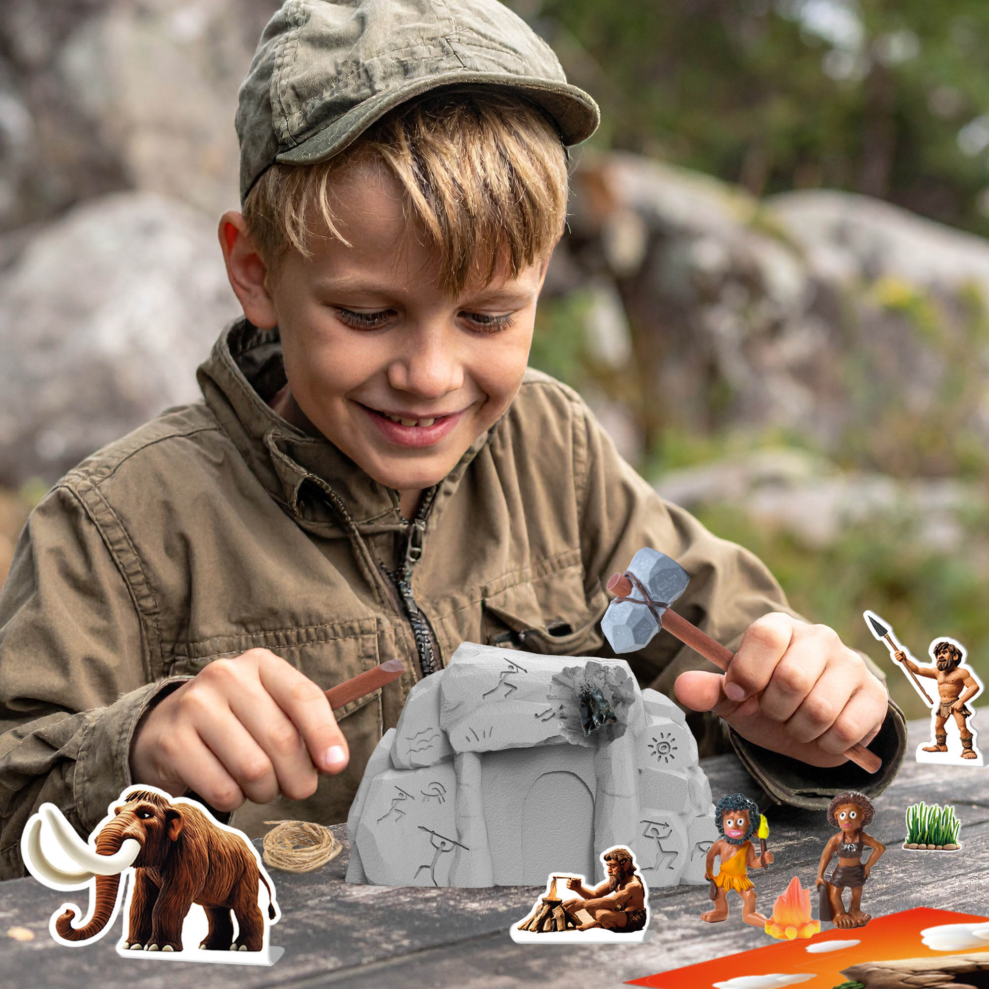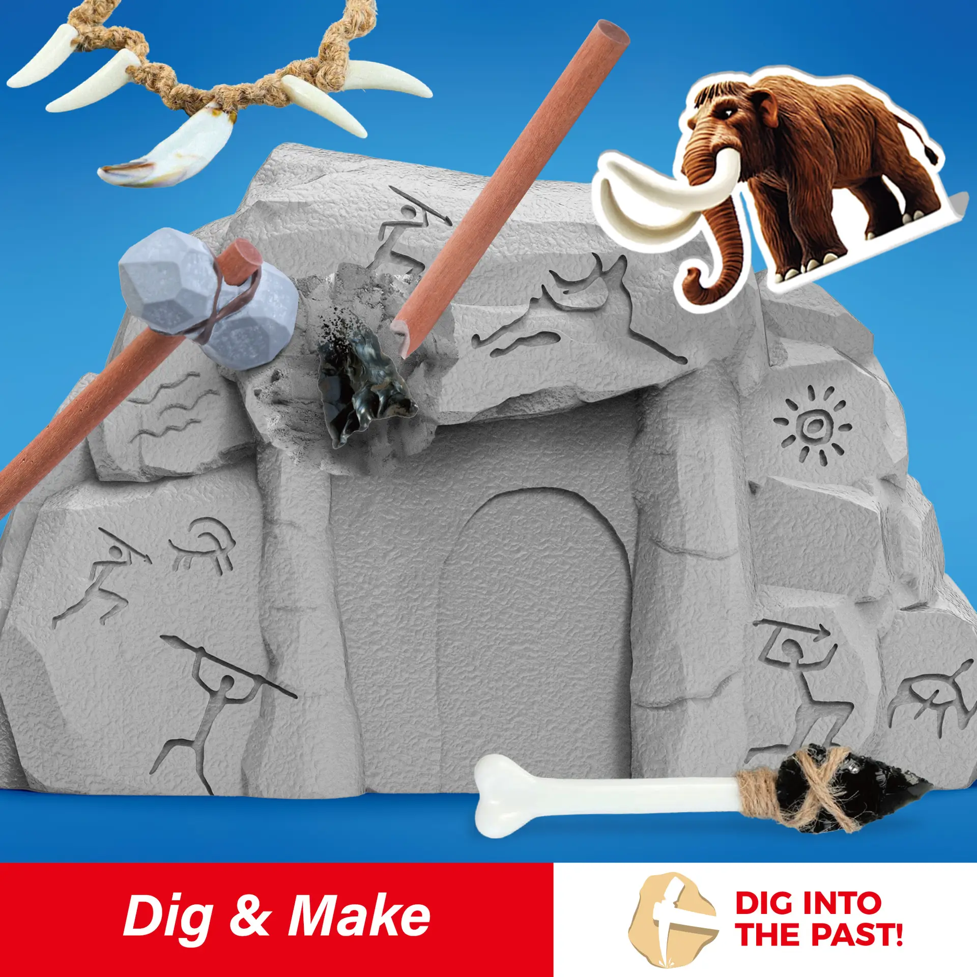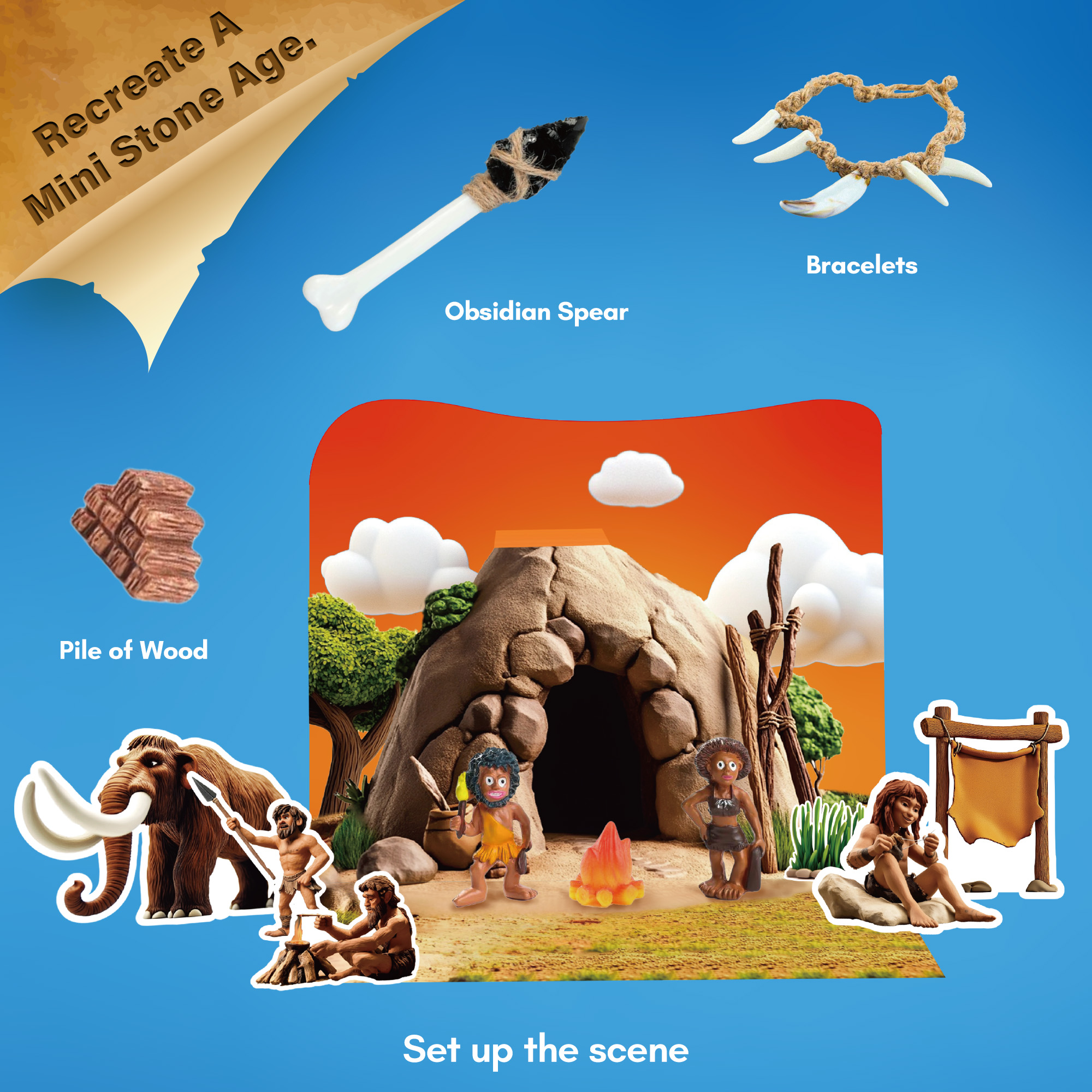 - [Travel Back in Time & Discover Prehistoric Creatures] Kids will dig up authentic replicas from 500,000 BC to 2500 BC, including primitive men model, animal bones, and obsidian arrowheads. Each artifact comes with fascinating historical facts, turning playtime into an immersive learning experience. By using this digging kit, kids can make their own DIY to create a simple stone age.