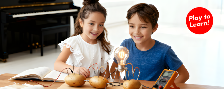 Where innovation and playfulness merge to create a memorable experience for curious minds of all ages. Our brand, named after the humble potato – a child’s first foray into science with the classic potato battery experiment, combined with the artistic flair of a piano – embodies our commitment to encouraging learning through play. At Piano Potato, we believe in the power of play to unlock the potential within every child.