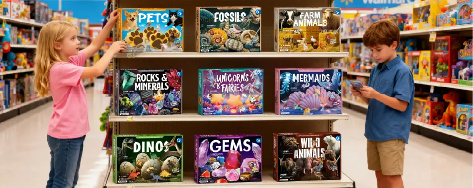 PPT appeals to all generations with its recognizable toys: Dig Kits (Dig’em Up!), Diggin’ Geology, and SciencExplore (Crystal Growing).