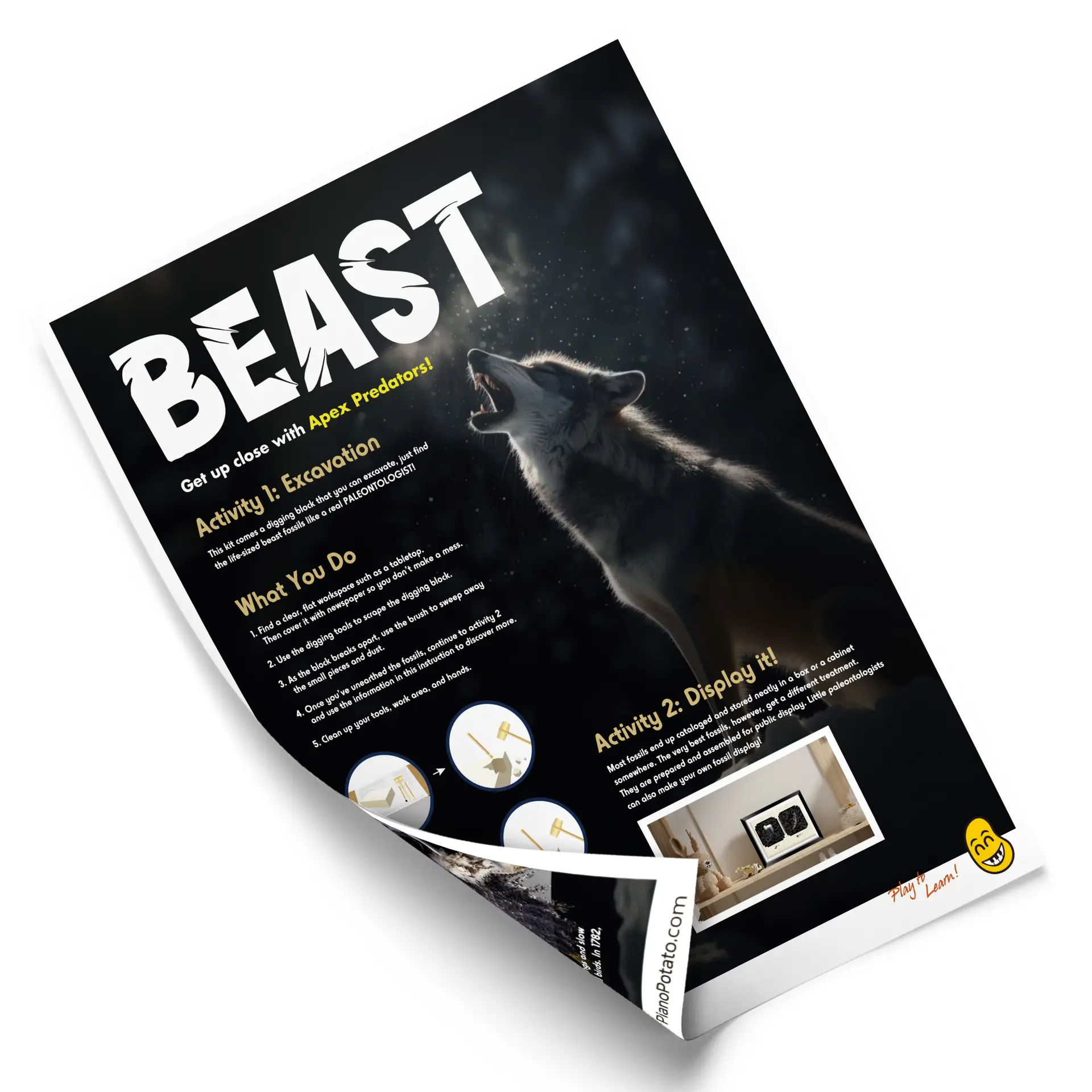 - Excavate 2 Life-Sized Apex Predator Fossils:Uncover the world of top predators with this beast fossil dig kit! Excavate 2 life-sized fossils: a sharp eagle claw and a powerful wolf claw. This excavation kit turns playtime into a thrilling paleontology adventure, letting kids dig up realistic fossils of nature’s most iconic hunters.