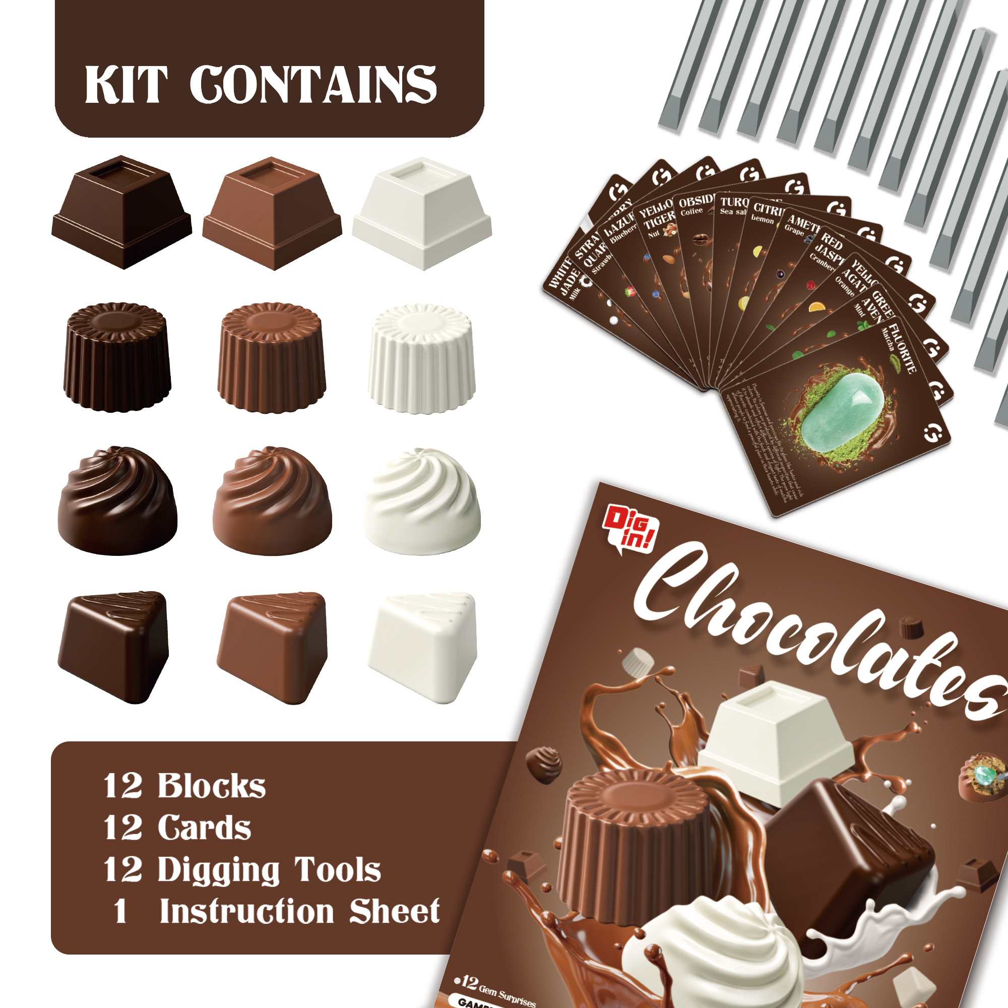 Chocolate Gemstone Dig Kit, Dig Up 12 Unique Genuine Gems