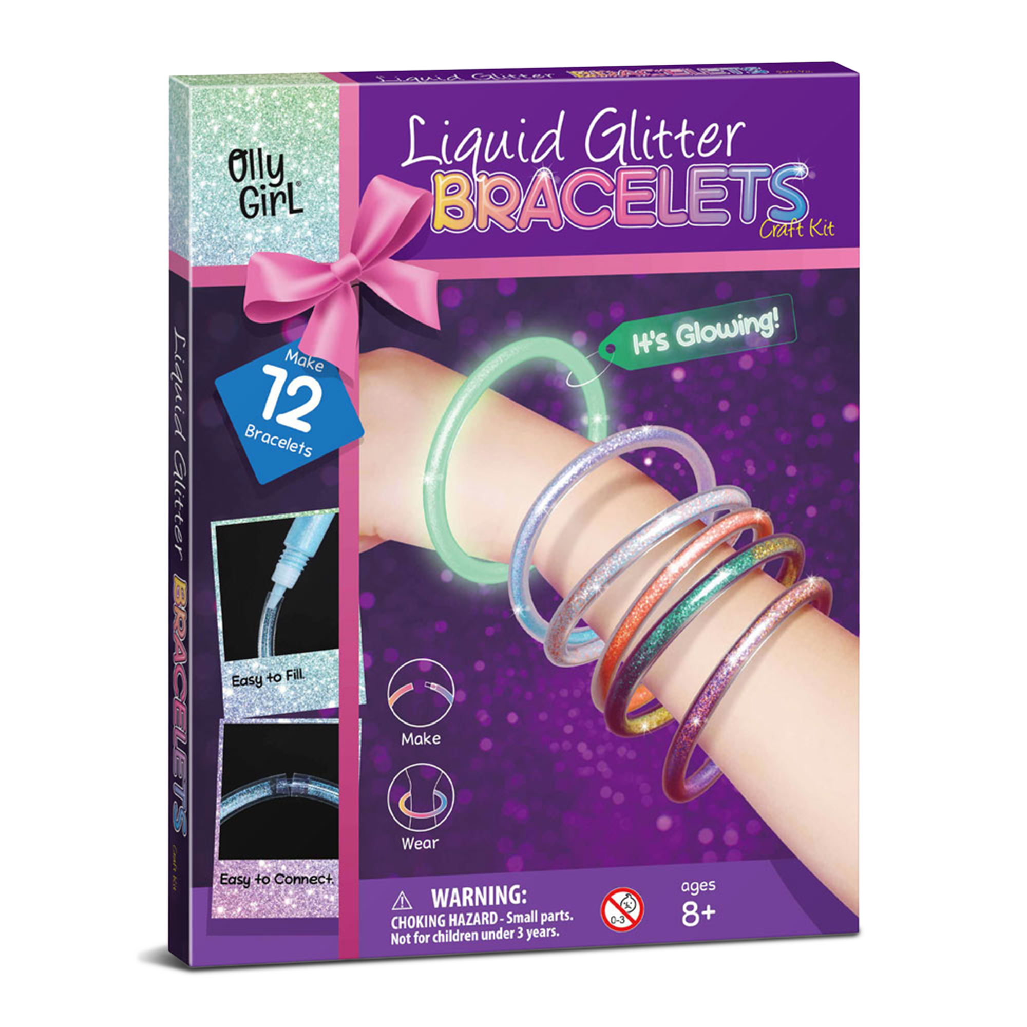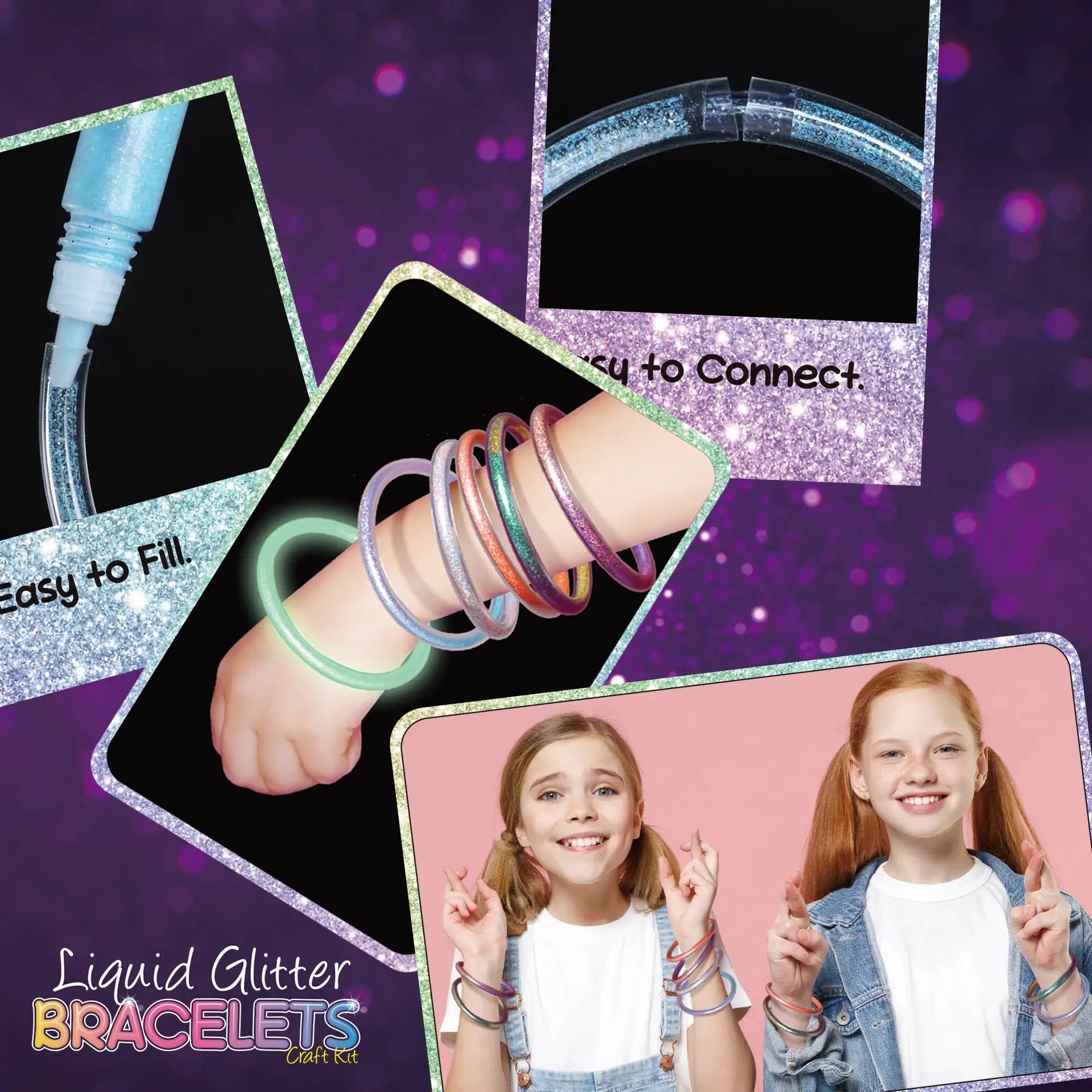 DIY Glitter Bracelet Making Kit for Girls, 6 Colors + Glow Glitter, 12 Tubes & Connectors, Ages 6 to 12