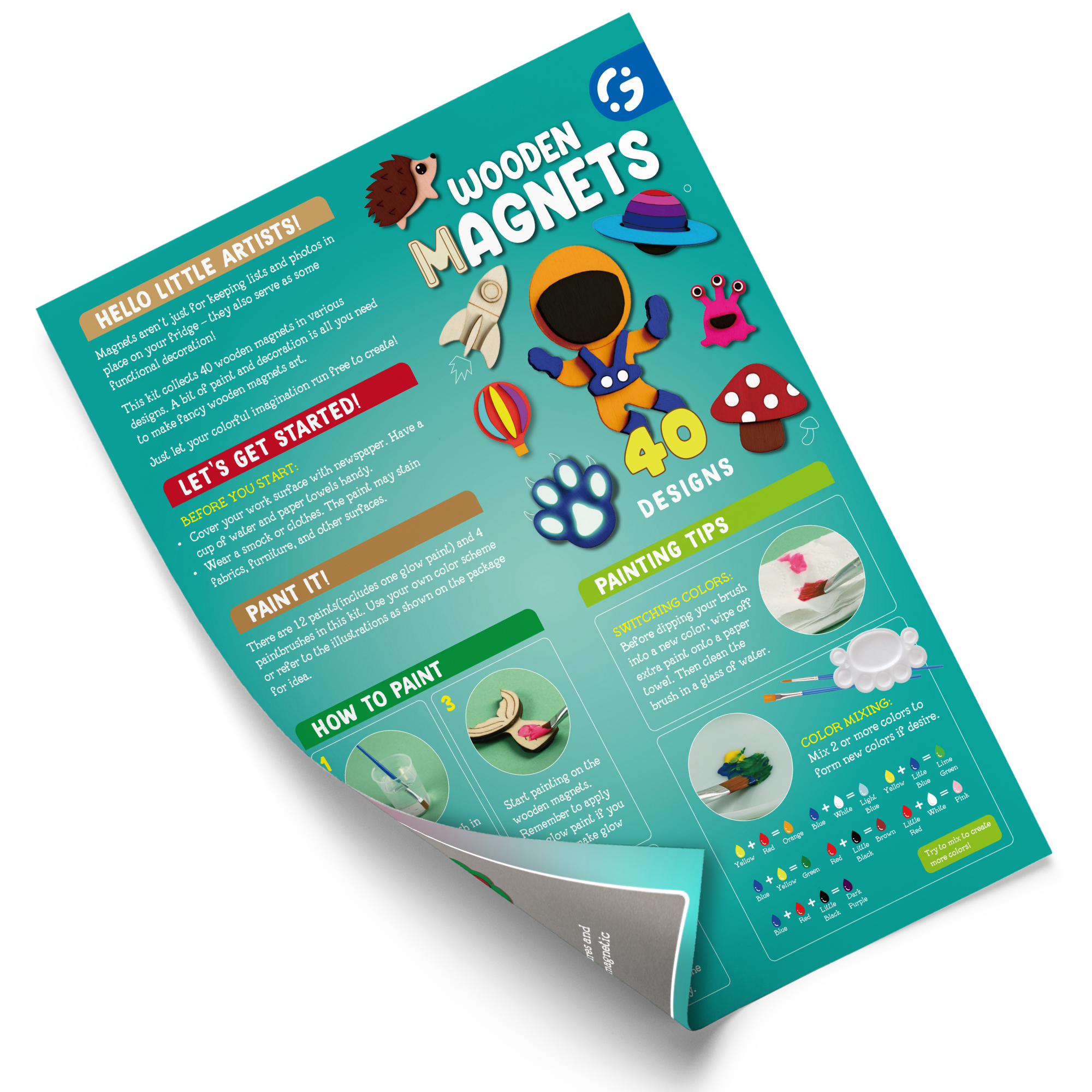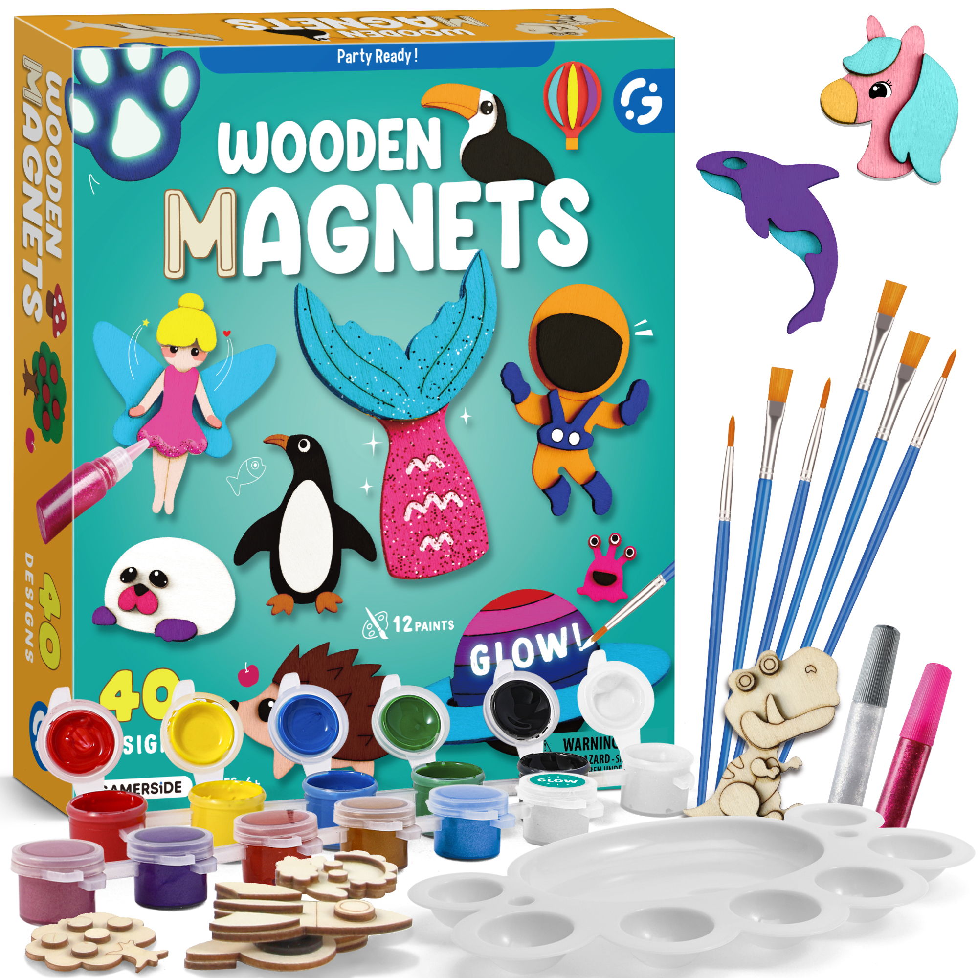 - DIY Wood Magnet Craft Kits: The package includes 40 wood magnets, 12 colors (of which 1 night lights), 4 brush, 2 glitter, 1 palette, 1 instructions. You can let your imagination run wild and mix and match colors to paint your own fridge stickers. And unlike other sets, with our set you can get magnets that can glow in the dark!