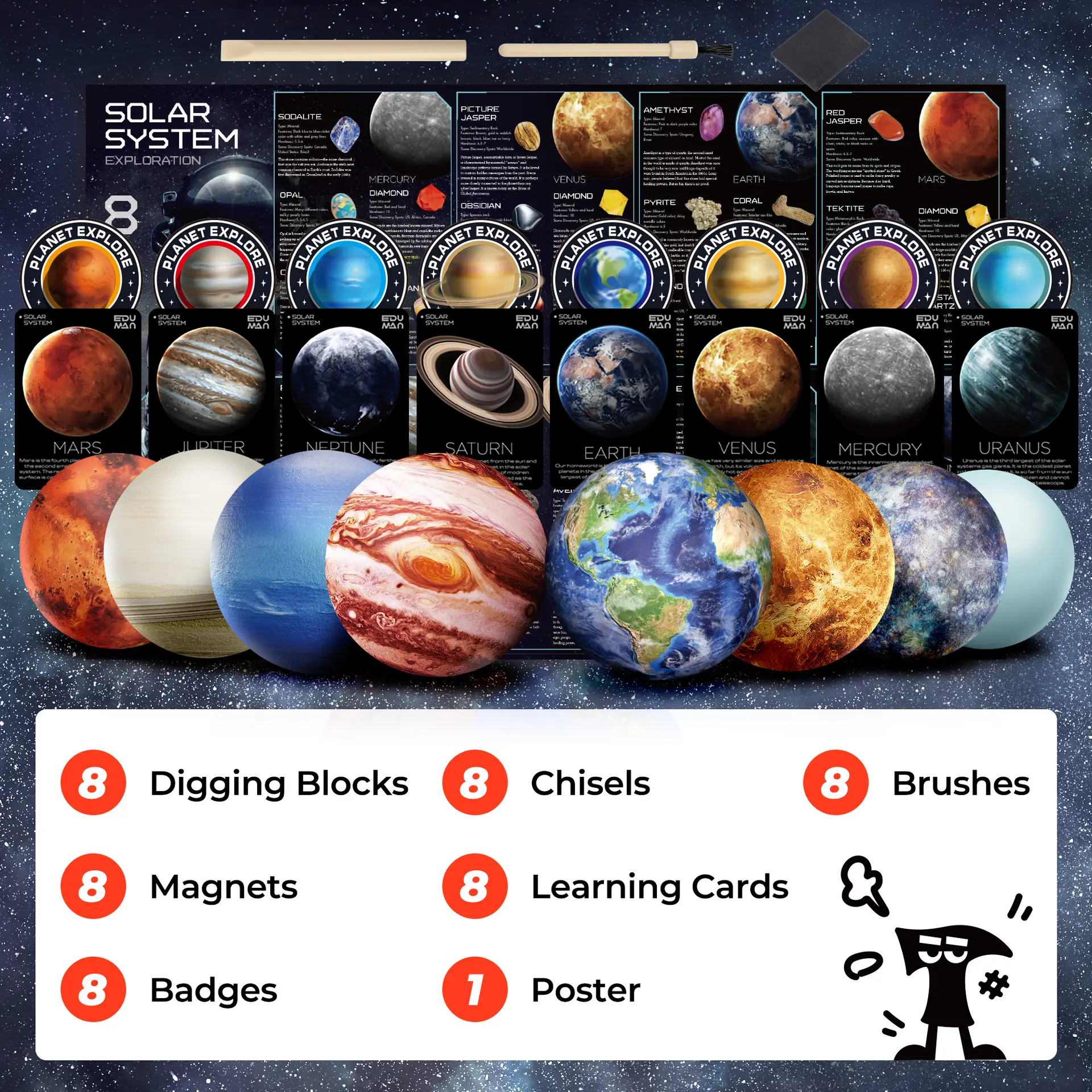 - Complete Rock Collection & Dig Game Set: Discover 8 unique planetary blocks (Earth, Mars, Jupiter, etc.) each with minerals matching their “surface.” Use the magnetic display cards to showcase findings after digging!