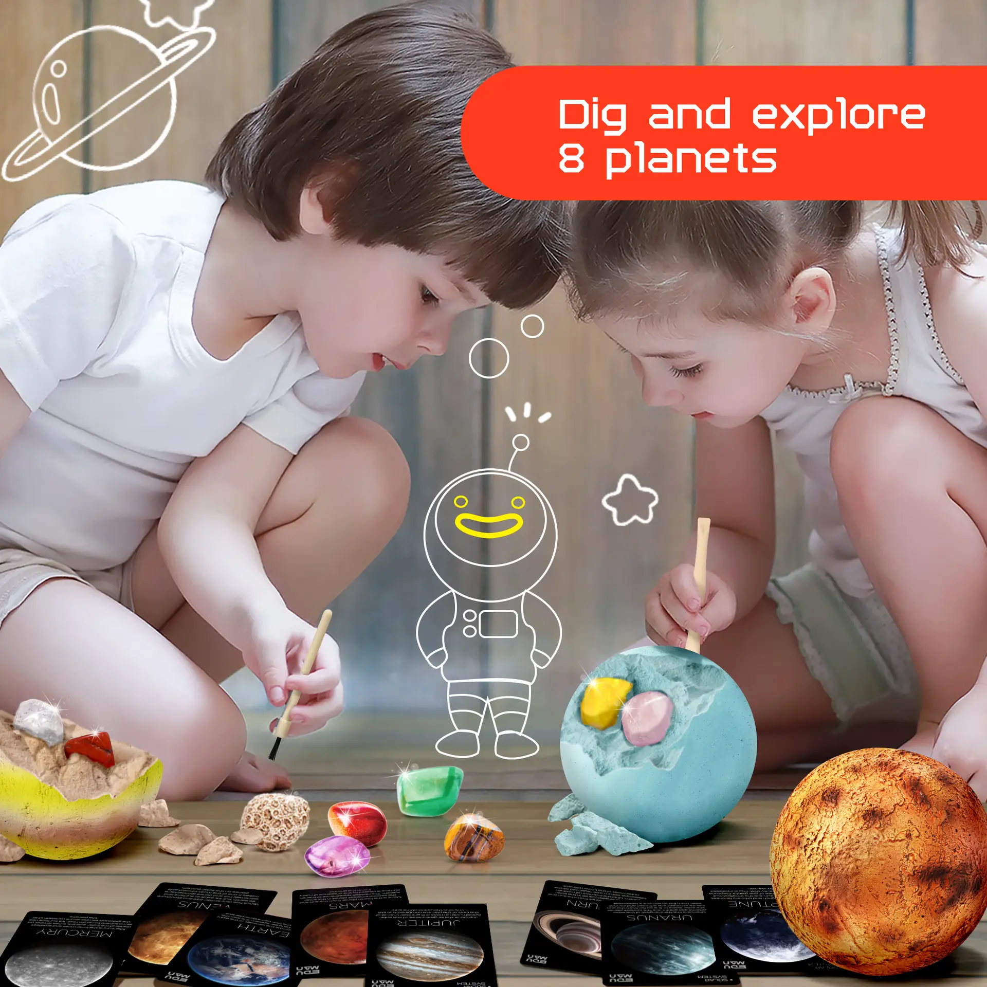 - Interactive Planet Toy Adventure with Gemstone Dig Kit: A space-themed excavation kit for ages 6+, featuring 8 planetary rock blocks filled with gemstones. Kids dig and uncover treasures like amethyst, quartz, and meteorite pieces while exploring the solar system!