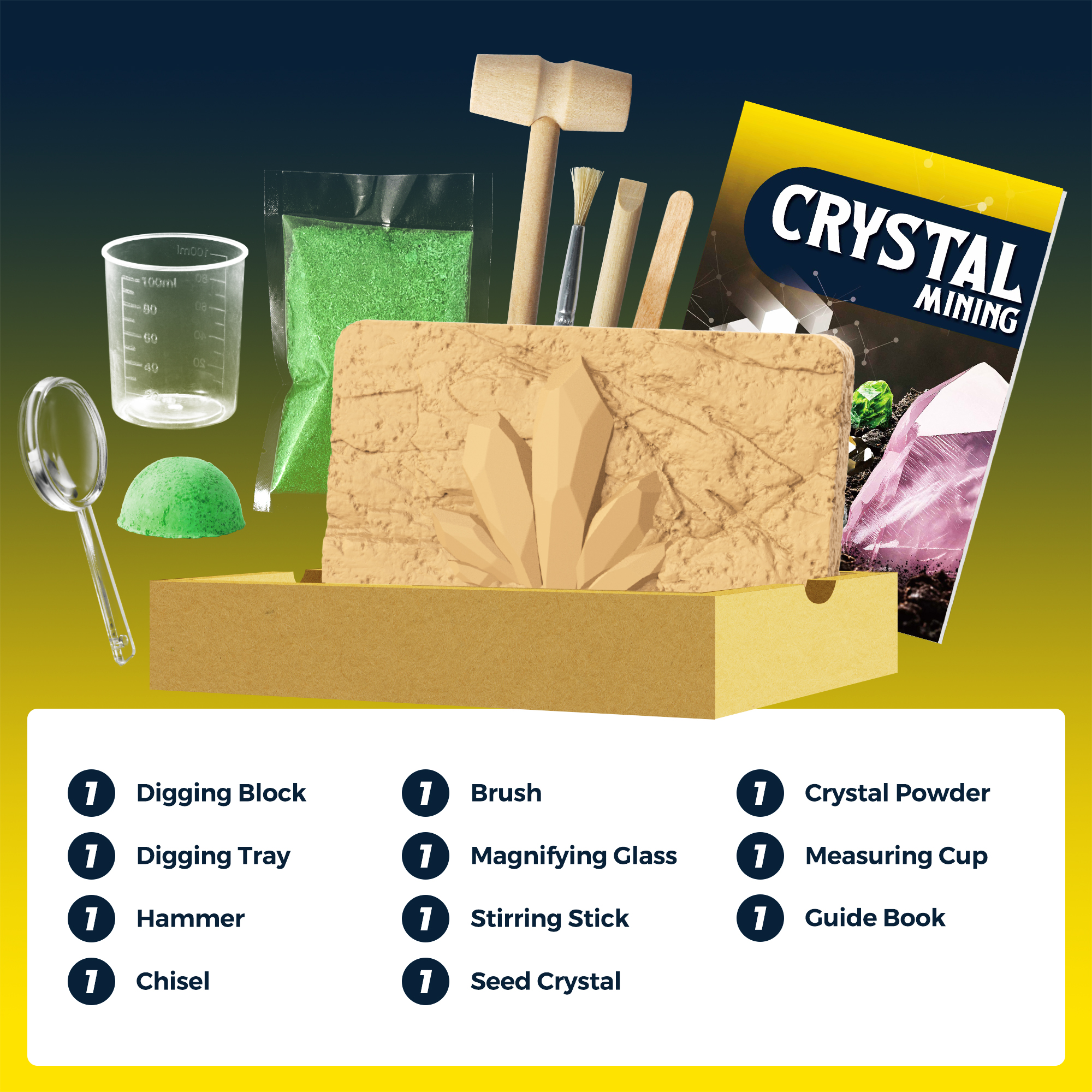 - Gemstone Dig Kit with Real Excavation Tools: Experience authentic archaeology with our complete gemstone excavation set! Dig up 7 genuine minerals—including quartz and amethyst—using real excavation tools: a digging block, hammer, chisel, brush, and magnifying glass. Perfect for kids who love fossil-digging kits and geology experiments.