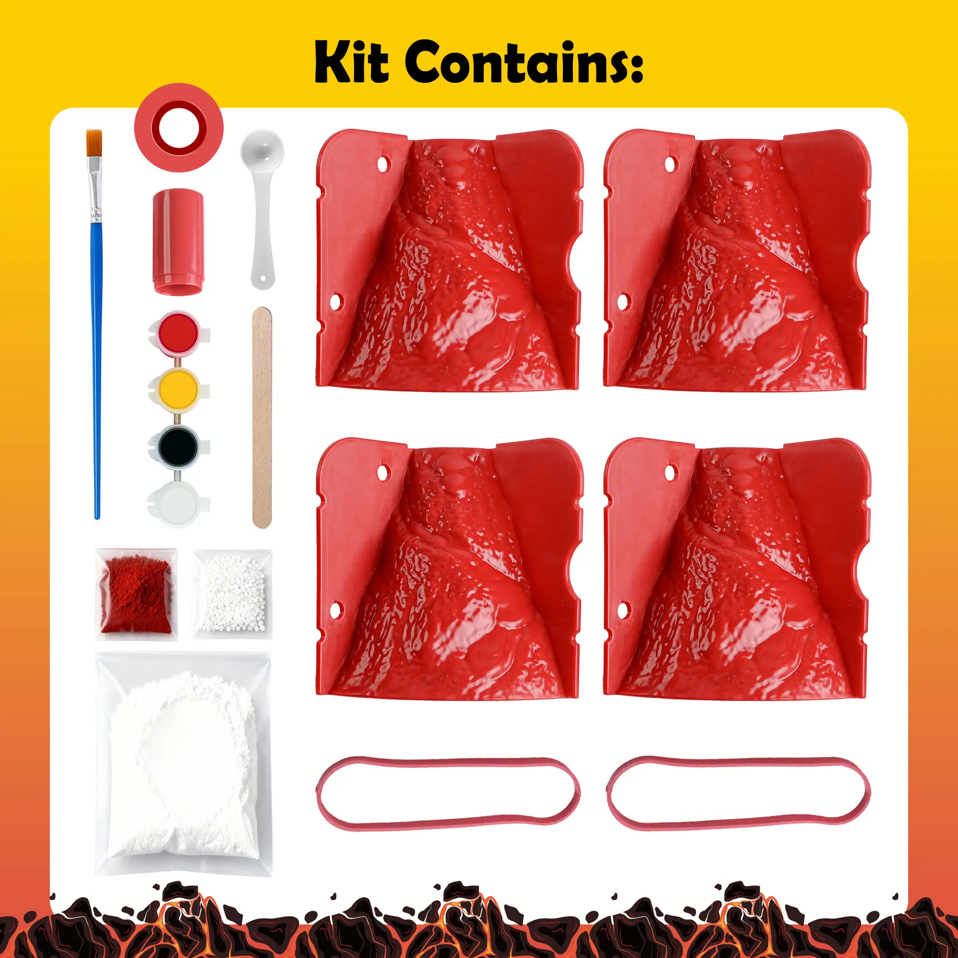 Complete Kit Included – Volcano mold parts, plaster powder, paint pots, brush, mixing tools, and accessories—everything in one box.