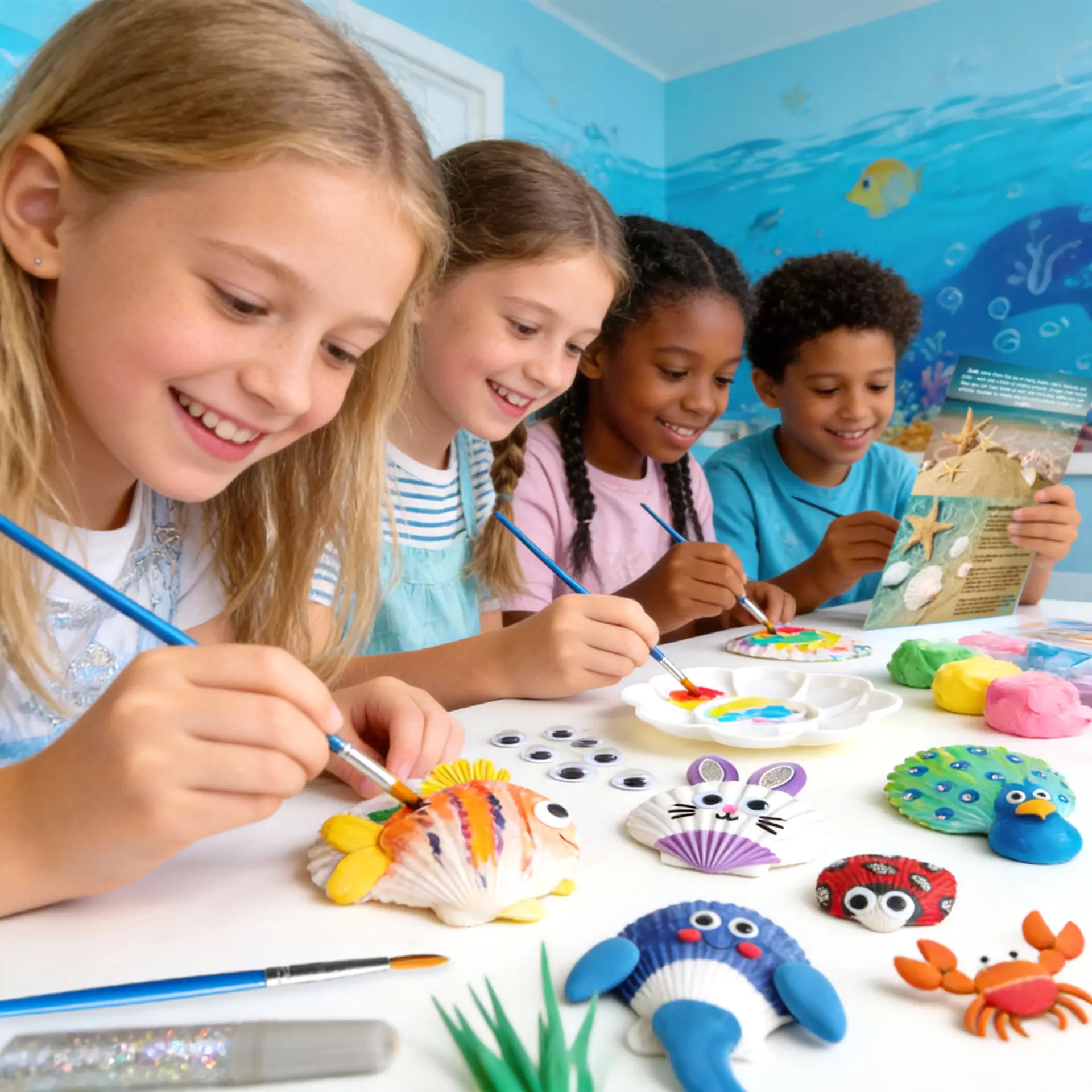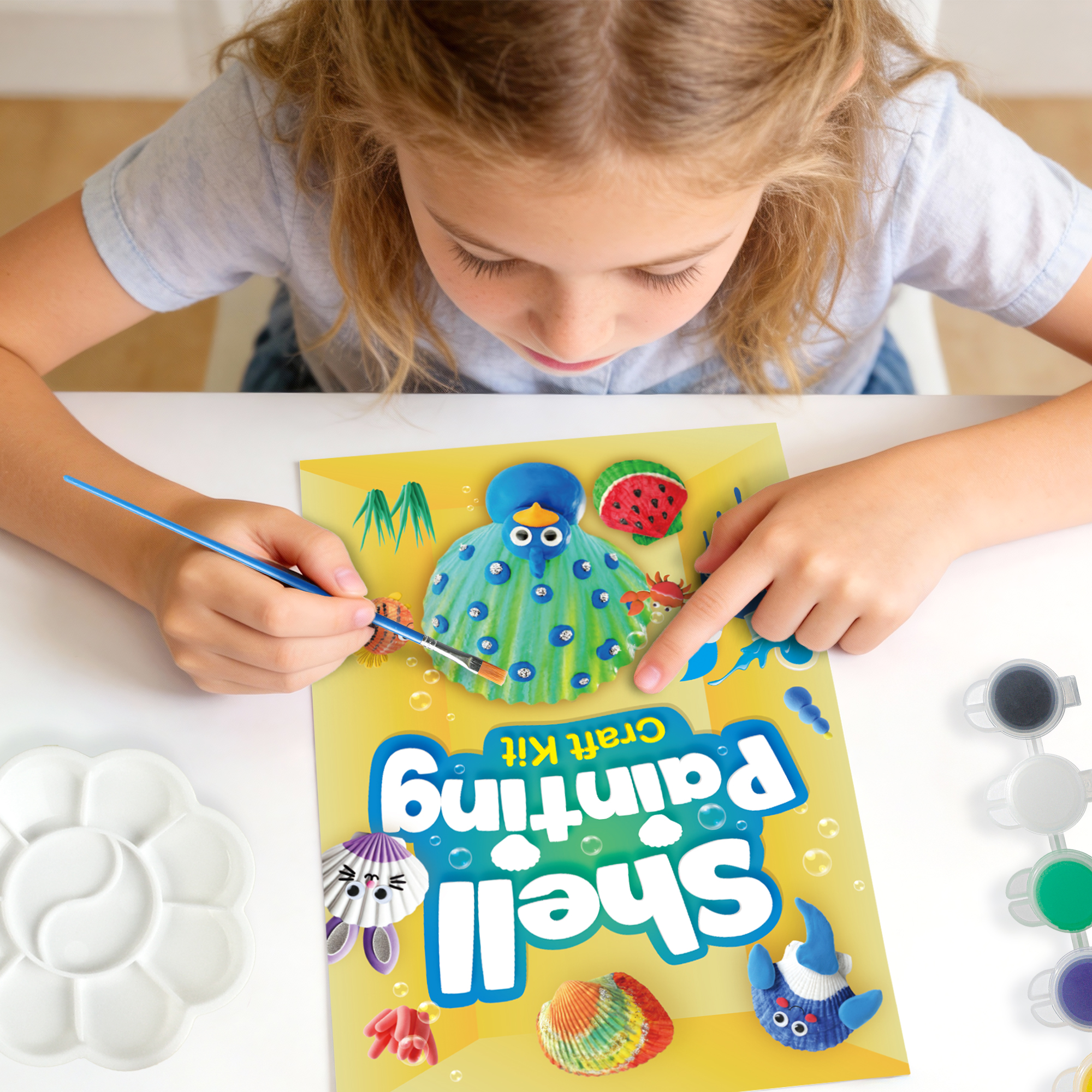 Includes 10 natural seashells, paints, 2 brushes, palette, glitter glue, clay, googly eyes, and glue—everything kids need to create fun seashell crafts, no extra supplies required. - Creative Learning Through Art & DIY Play