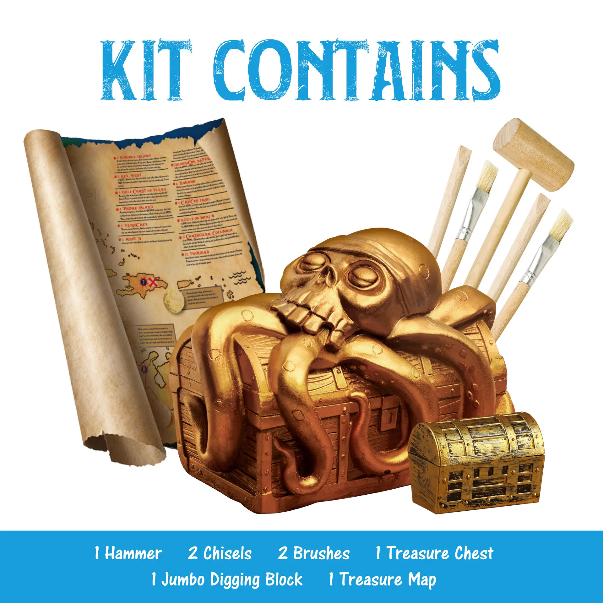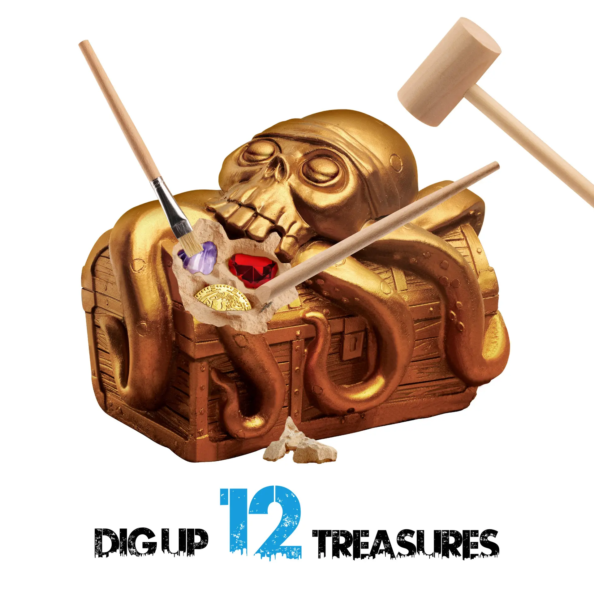 Jumbo Pirate Dig Kit with Treasure Chest – Dig Up 12 Pirate Treasures, Gems & Gold Coins (Ages 6+)