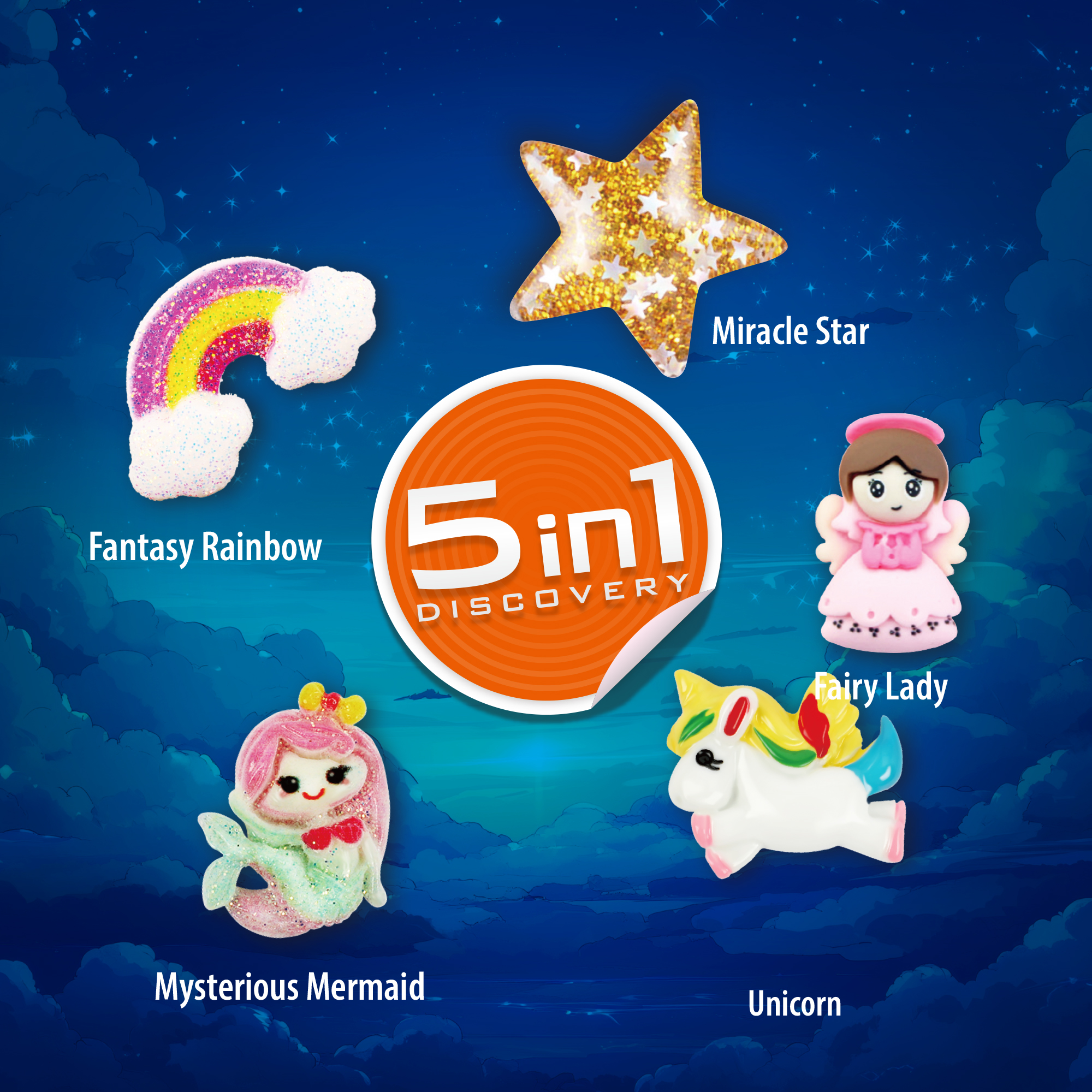 - Uncover 5 Magical Treasures in One Kit:Dive into the magic world dig kit and uncover 5 enchanting surprises, including a mysterious mermaid, fairy lady, unicorn, miracle star, and fantasy rainbow. This 5-in-1 discovery kit turns playtime into a spellbinding adventure, letting kids dig up whimsical treasures just like a real magician.