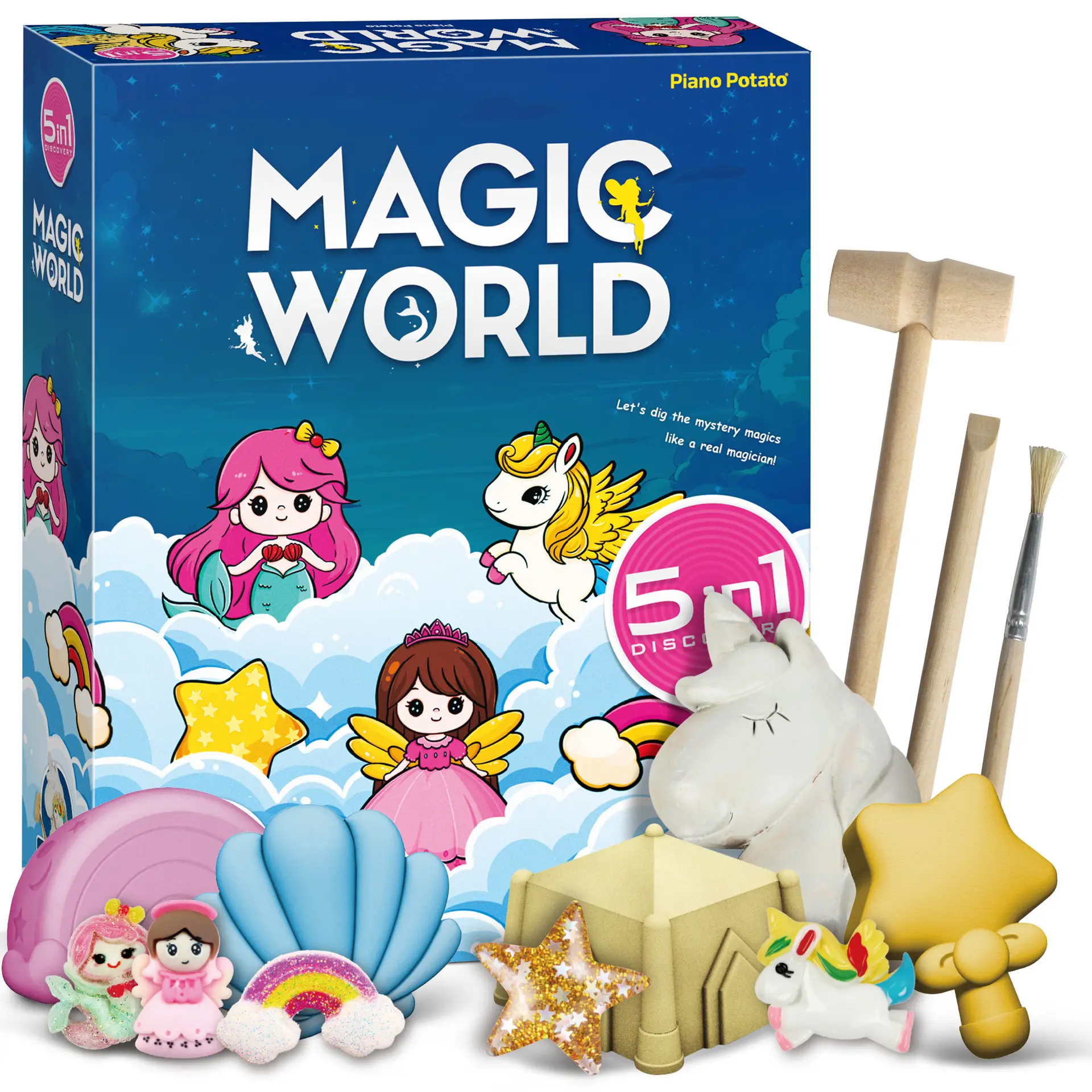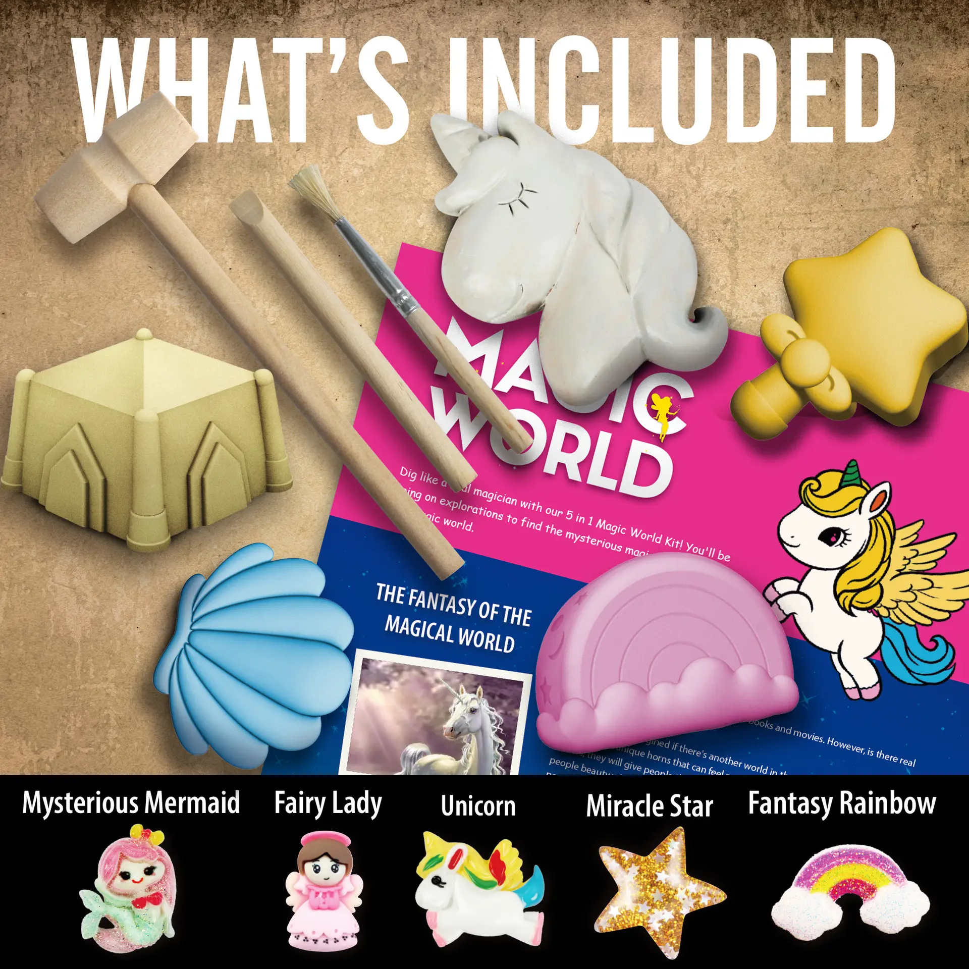 Magic World Dig Kit – 5-in-1 Discovery: Mermaid, Fairy, Unicorn & More, Kids STEM Toy