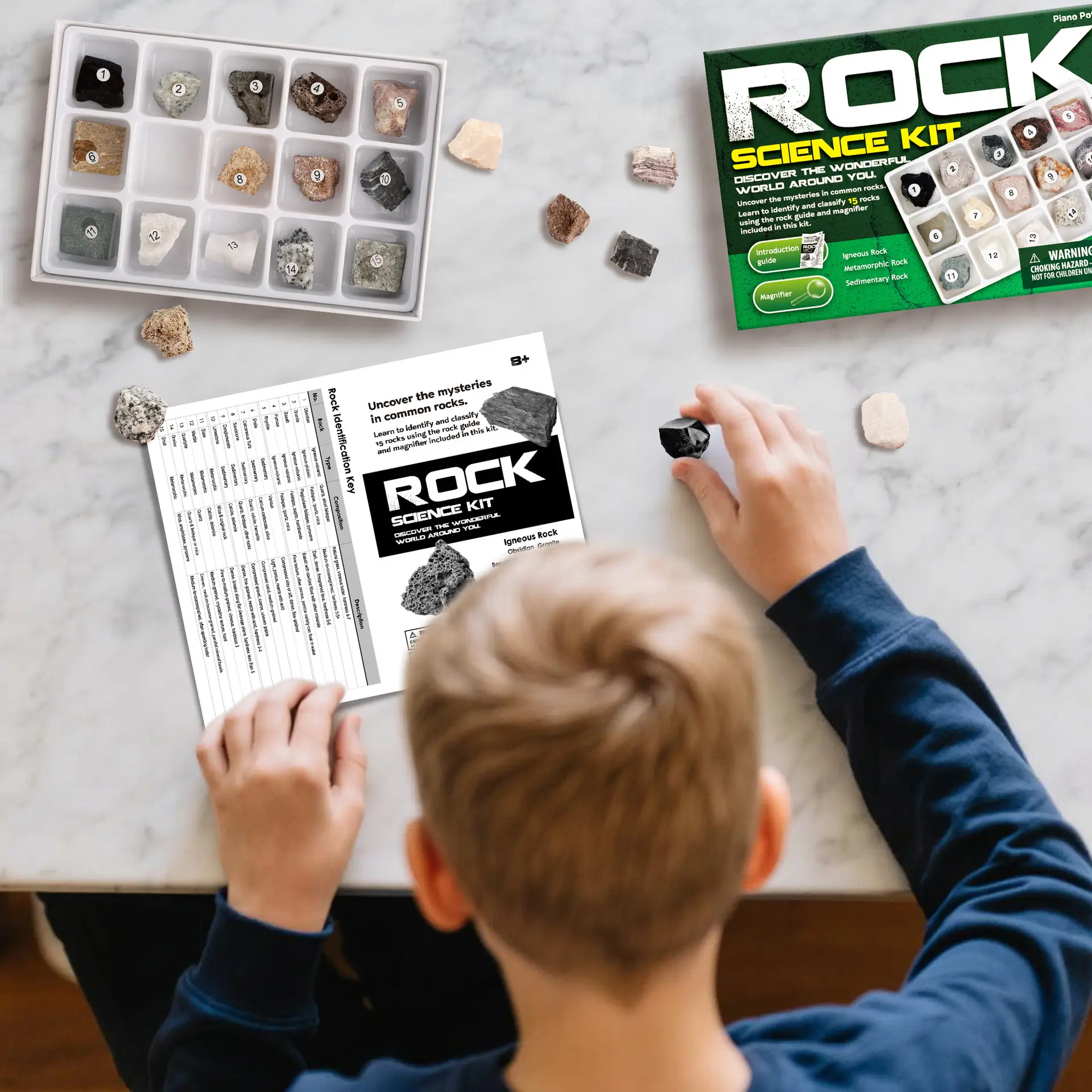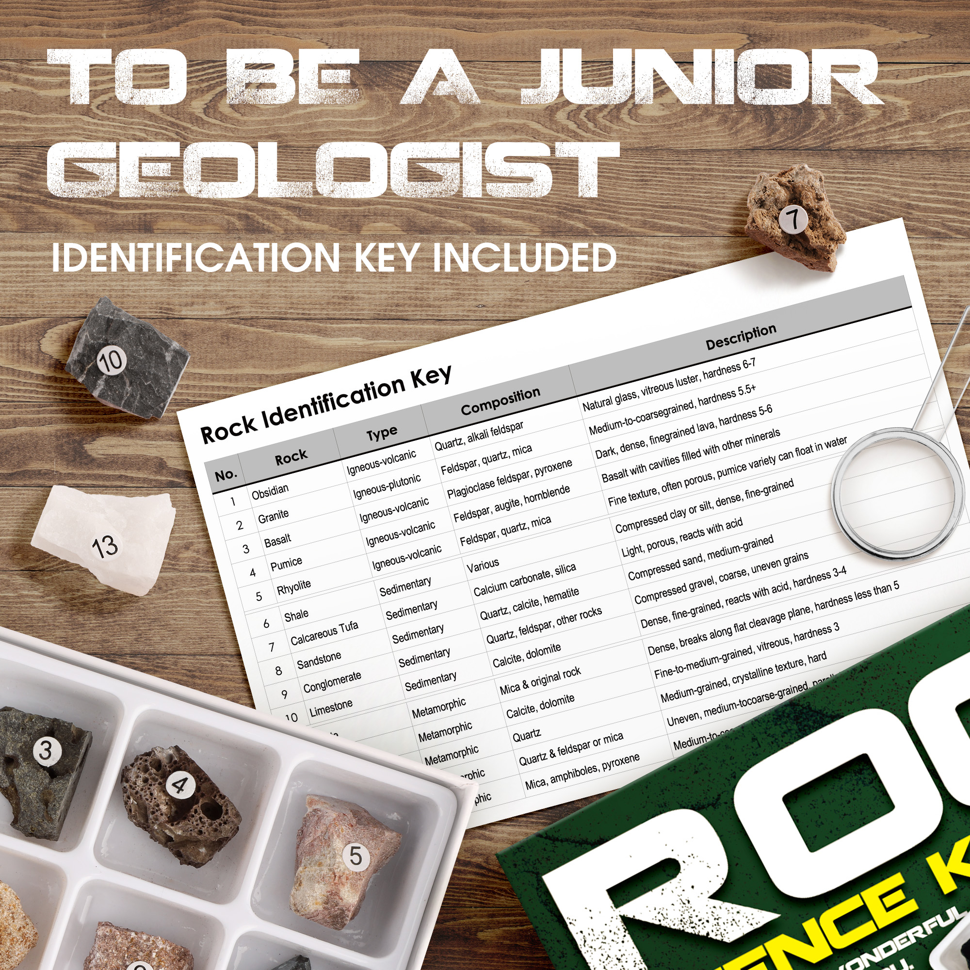 - Rock Collection & Identification Kit: More than a rock collection for kids—it’s an education kit with a magnifier and ID guide! Classify samples (Granite, Limestone) like real geologists, mastering rock identification and Earth science basics.
