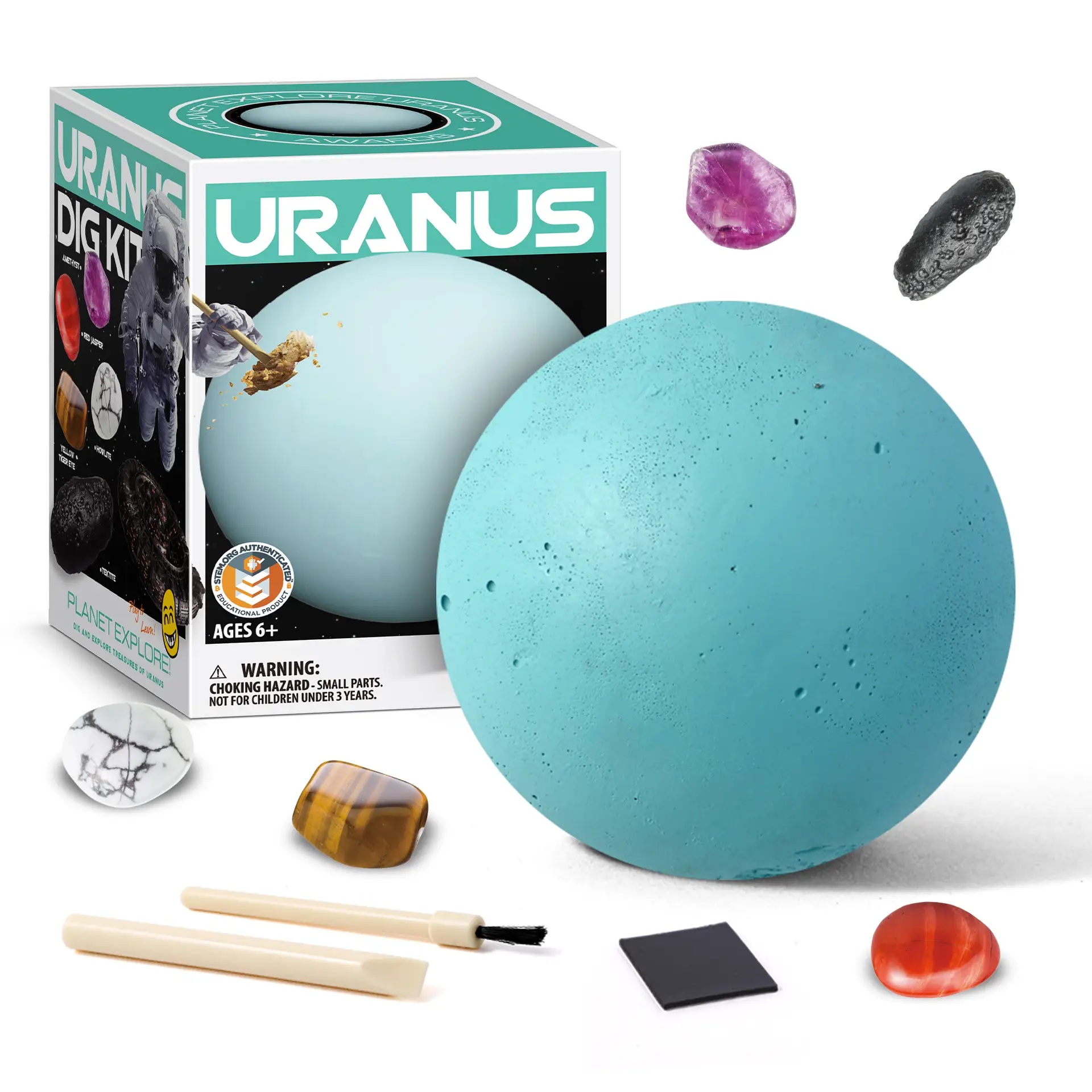 - Complete Rock Collection & Dig Game Set: Discover 1 unique Uranus planetary blocks each with minerals matching their “surface.” Use the magnetic display cards to showcase findings after digging!