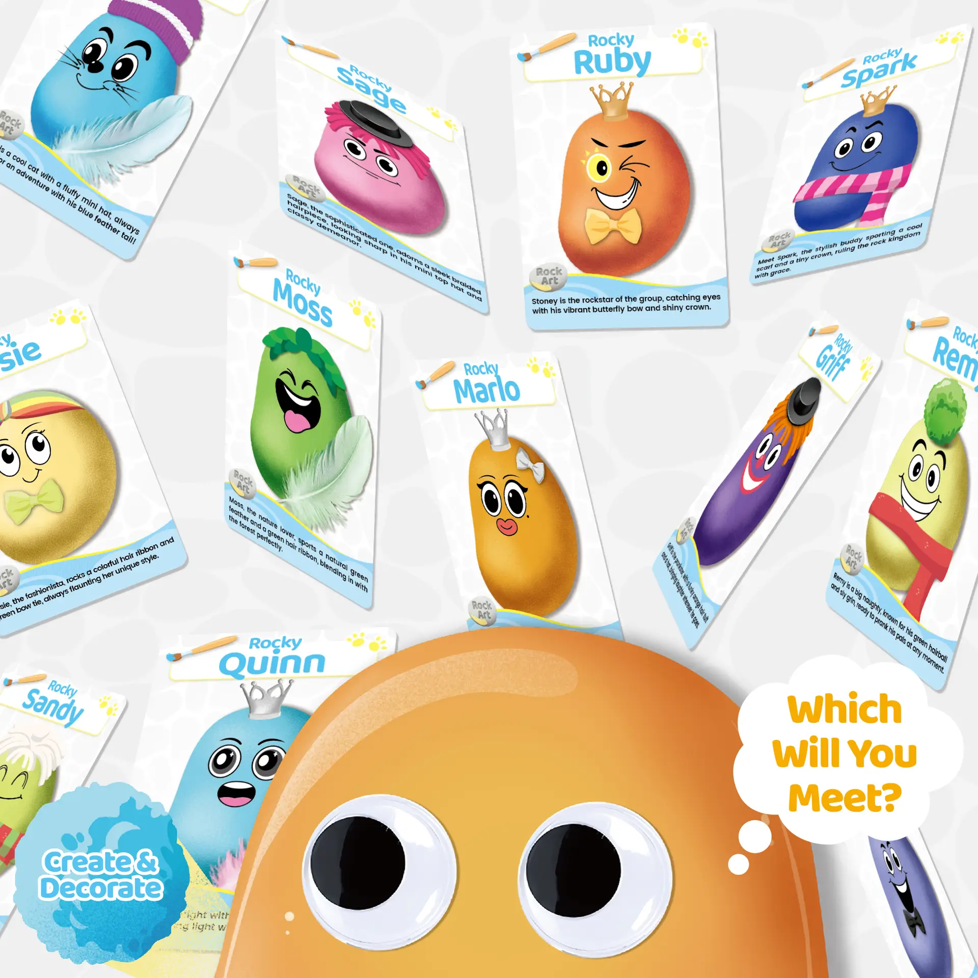 - Meet Your Rock Pal (Surprise Inside!) – Open the box to discover which Rock Pal character you’ll create, decorate, and “bring to life.”