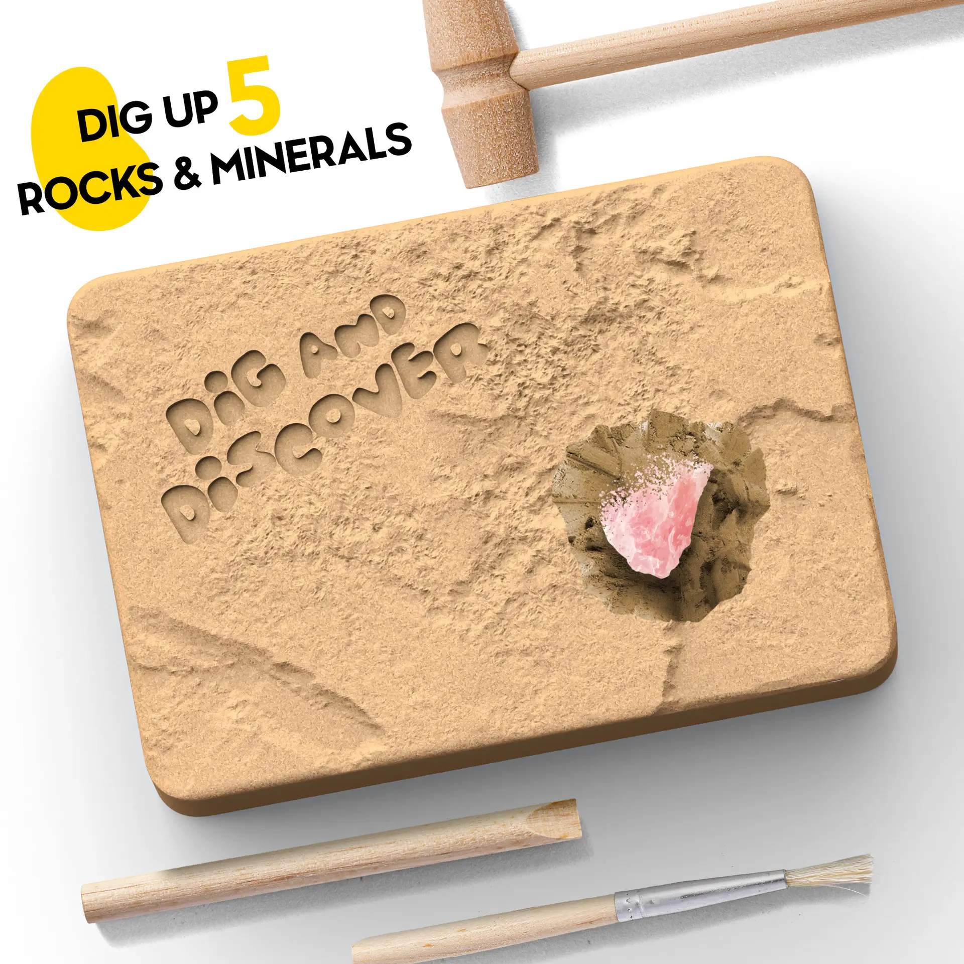 Rocks and Minerals Mining Kit – Excavate 5 Real Geology Specimens, Kids STEM Geology Kit