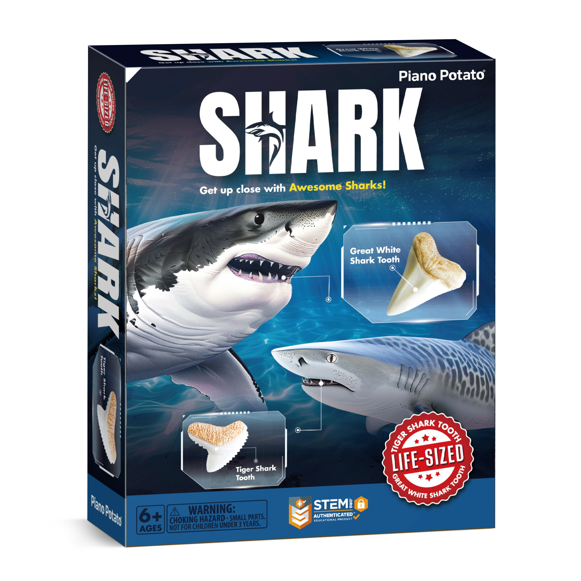 - Excavate 2 Life-Sized Shark Tooth Fossils:Dive into the world of sharks with this shark teeth dig kit! Uncover 2 life-sized shark tooth fossils: a fearsome Great White Shark Tooth and a powerful Tiger Shark Tooth. Get up close with awesome sharks and experience the thrill of being a young paleontologist.