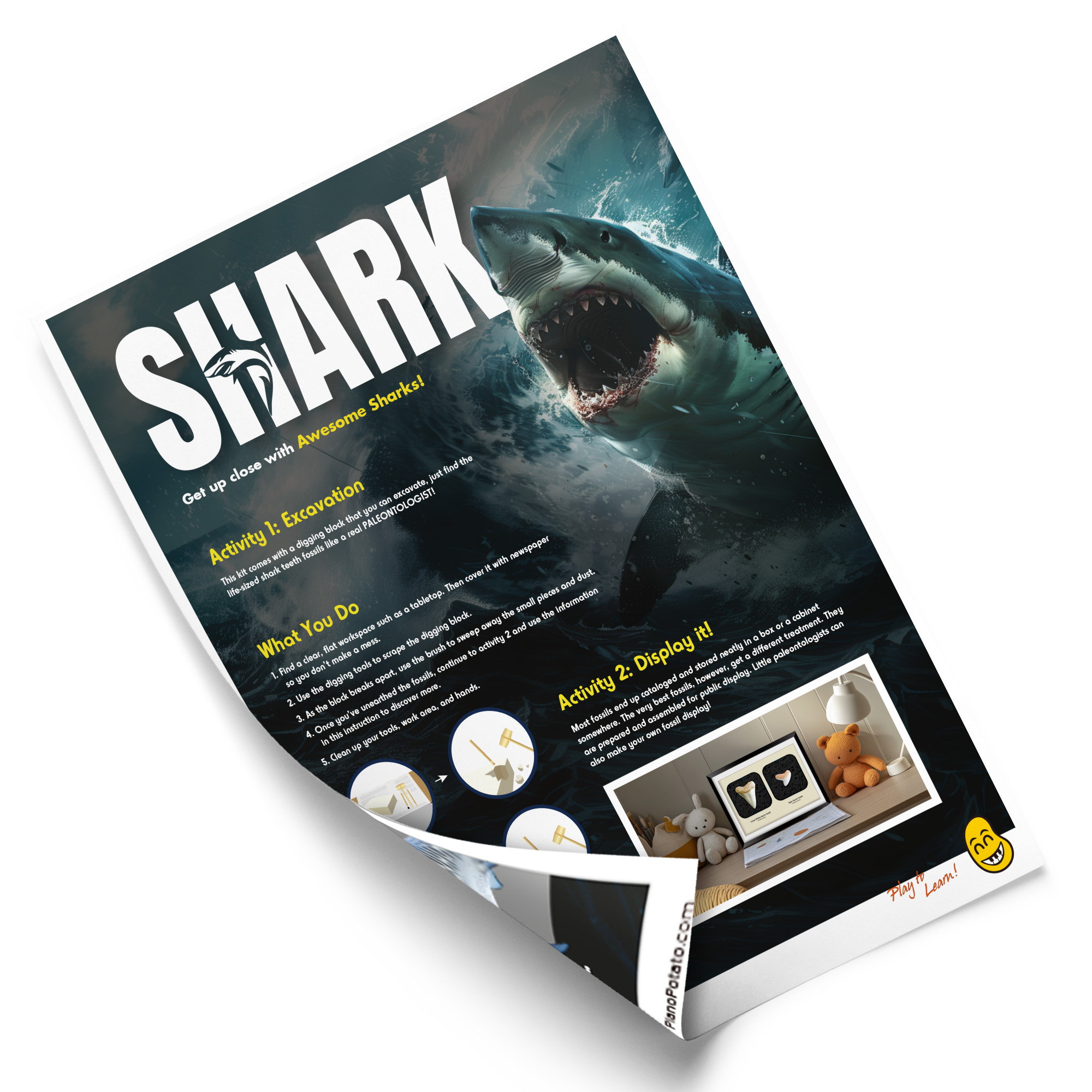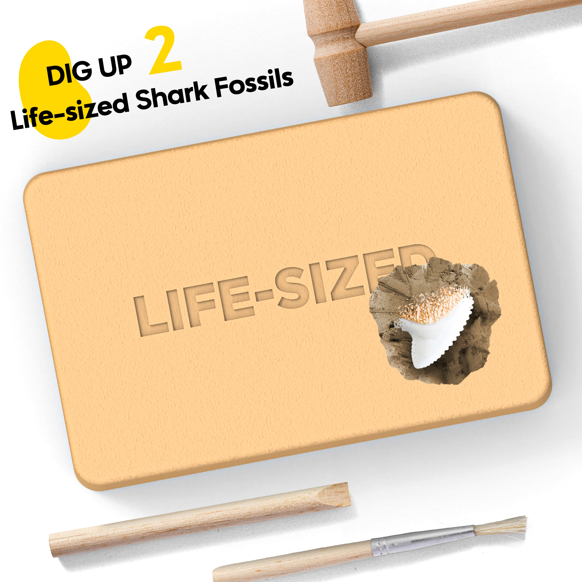 - All-In-One Shark Excavation Tools:No extra supplies needed! This fossil dig kit includes everything for successful digging: 1 digging block, 1 brush, 1 hammer, 1 chisel, 1 instruction sheet. Kid-sized tools and a soft block make excavating shark fossils safe and easy for little hands.