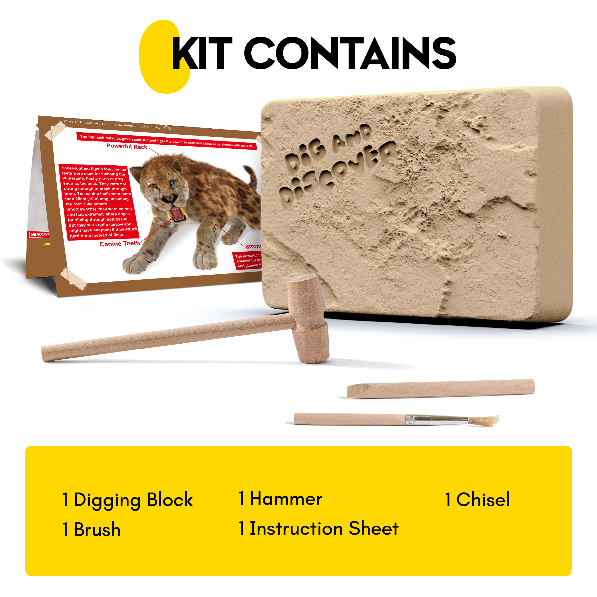 - All-In-One Digging Tool Set:Comes with dig block, wooden hammer, chisel, brush and detailed manual. Kid-friendly tools for independent digging, cleaning and assembling, enhancing hands-on skills.